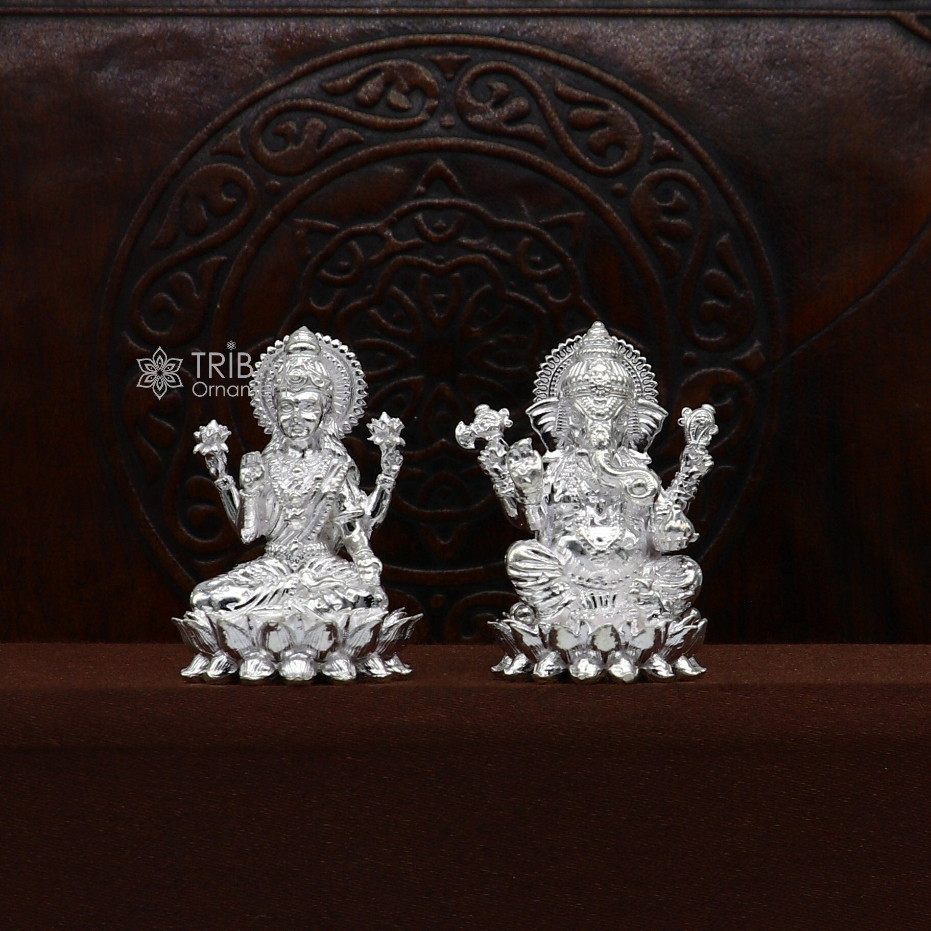 1.5" 925 Sterling silver Lakshmi and Ganesha statue, puja article figurine, Diwali puja brings joy, hope, and wealth to the owners art746