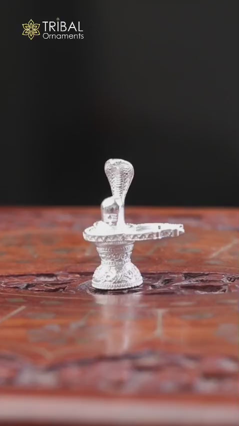 1" 925 sterling silver handmade small solid Lord Shiva lingam stand, silver Shivling puja article, for wealth and prosperity art594
