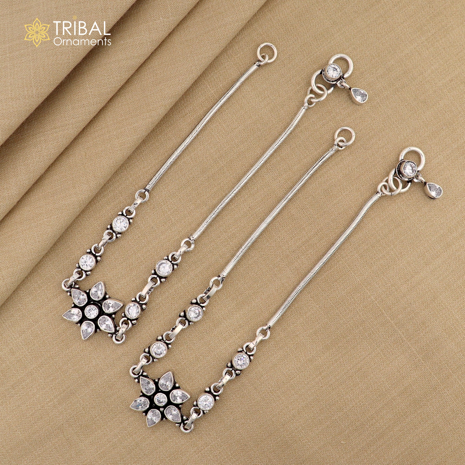 10.5 " 925 sterling silver flower design white stone anklets foot bracelet ,ankle bracelet jewelry ank684