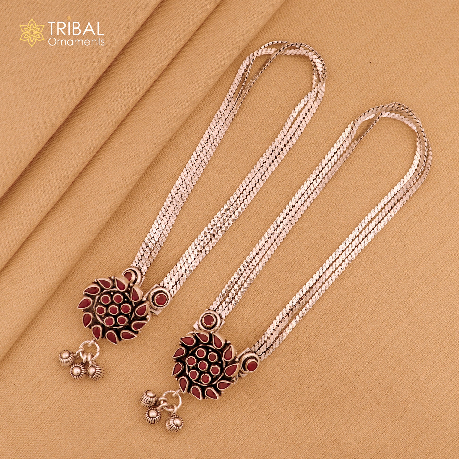 10.5" 925 sterling silver pink stone chain anklets foot bracelet ank719