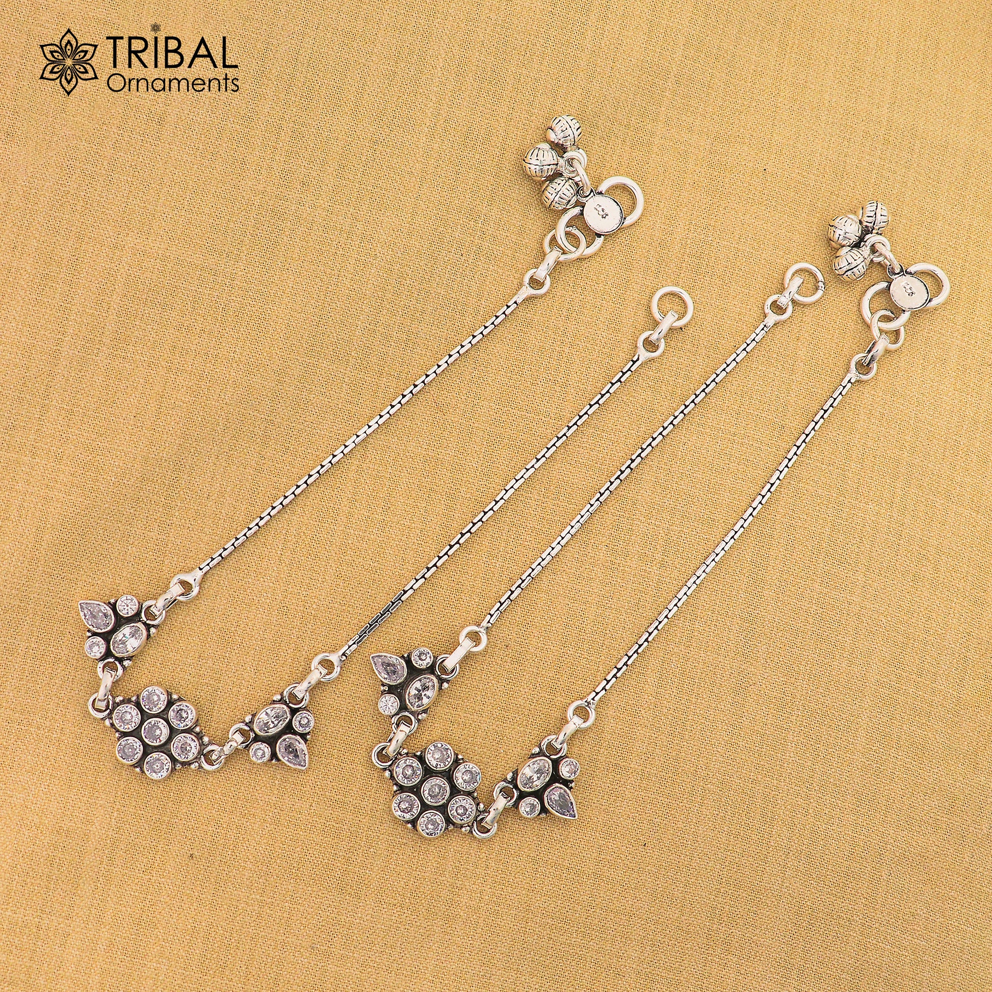 10.5" 925 sterling silver white stone chain anklets foot bracelet ank729