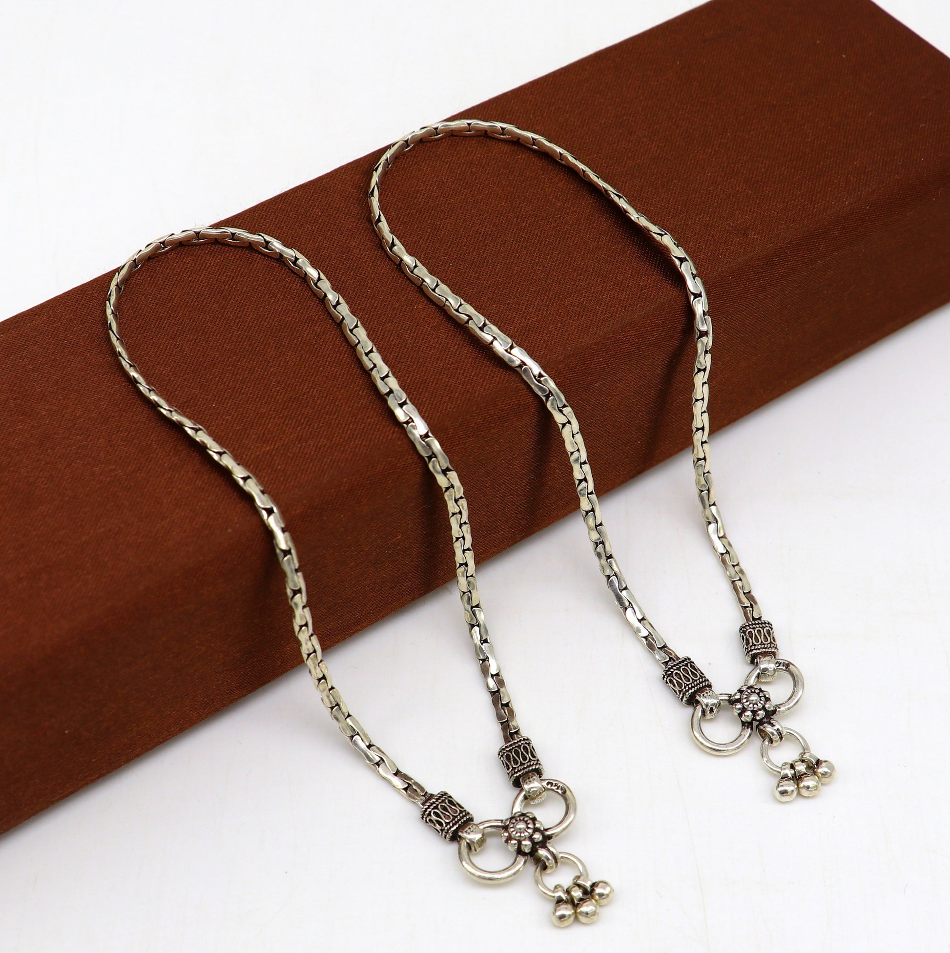 10.5" pure 925 sterling silver handmade solid gorgeous light weight chain anklets pair, trendy foot bracelet jewelry gift to her ank336