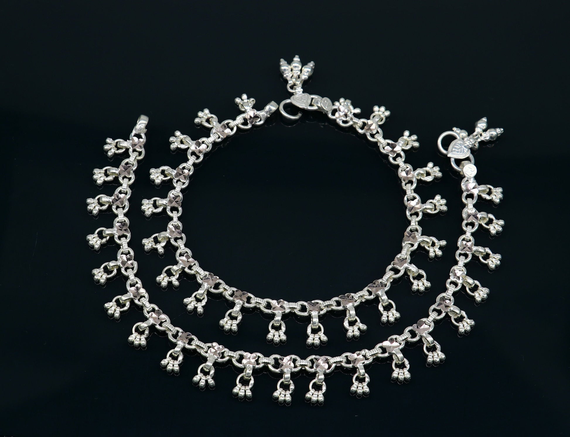 10" solid sterling silver handmade ankle bracelet anklets, fabulous hanging drops wedding brides anklets belly dance jewelry ank412