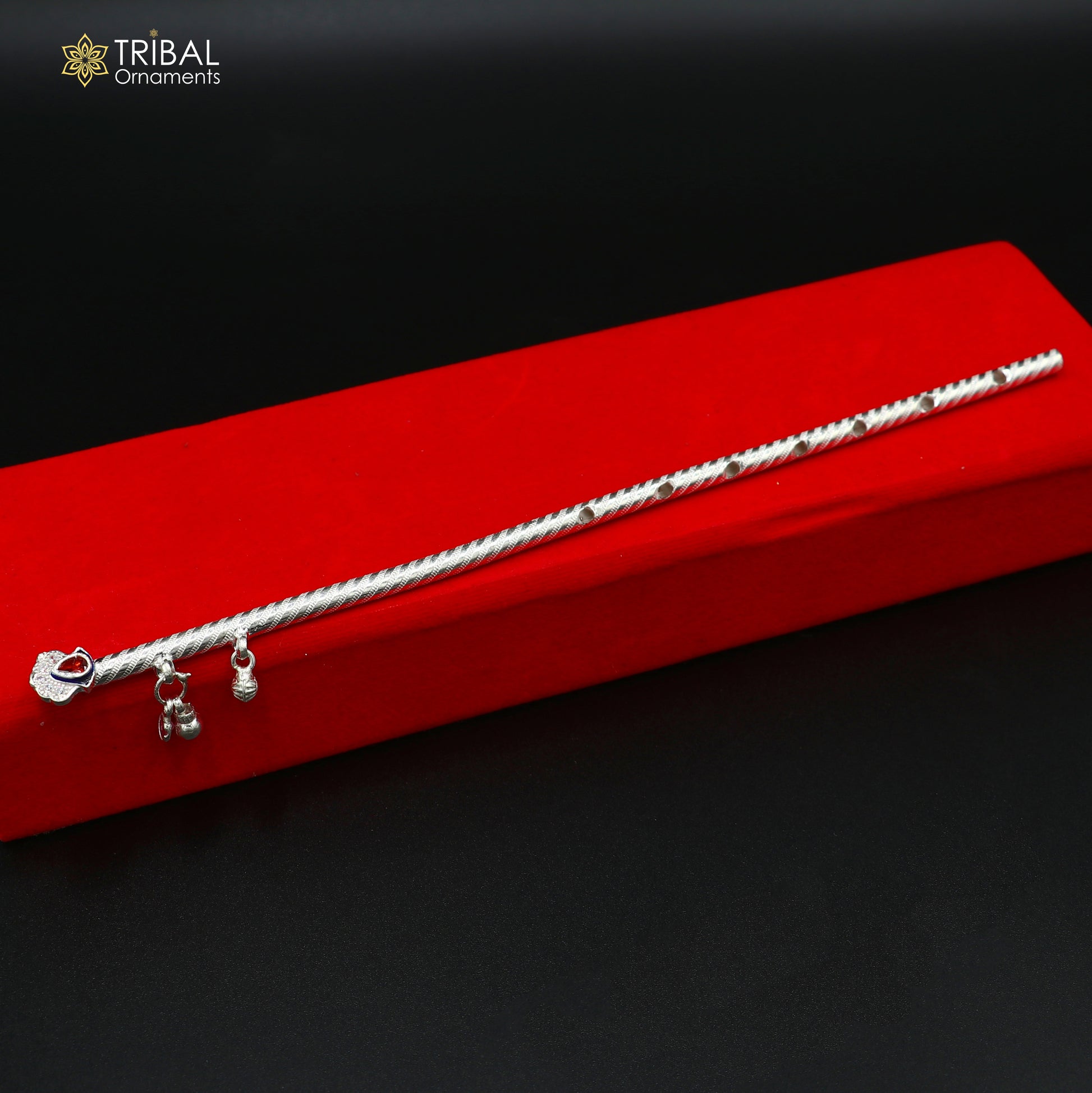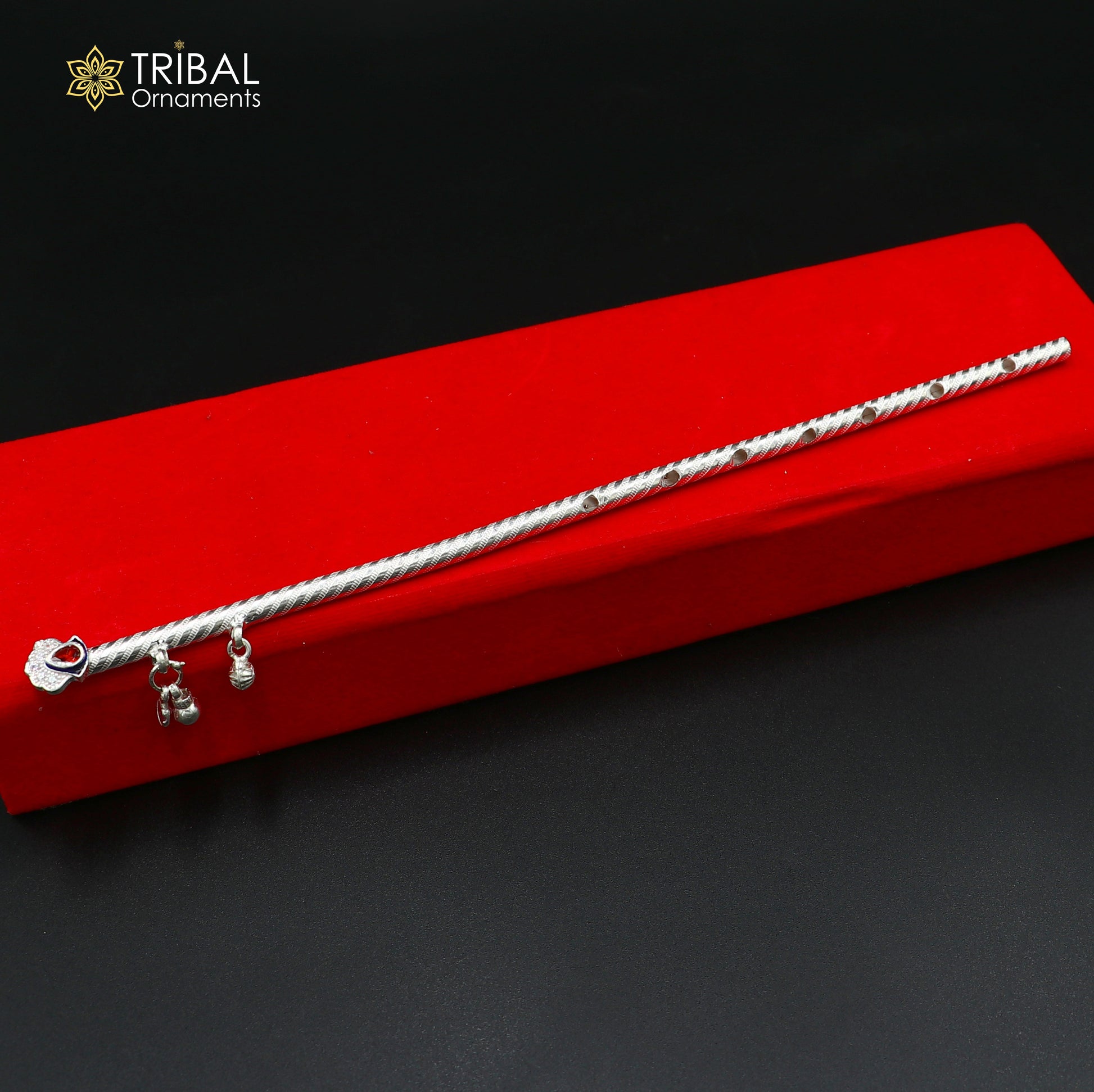 9" 925 sterling silver stylish design bansuri laddu Gopala flute, Krishna flute su1375