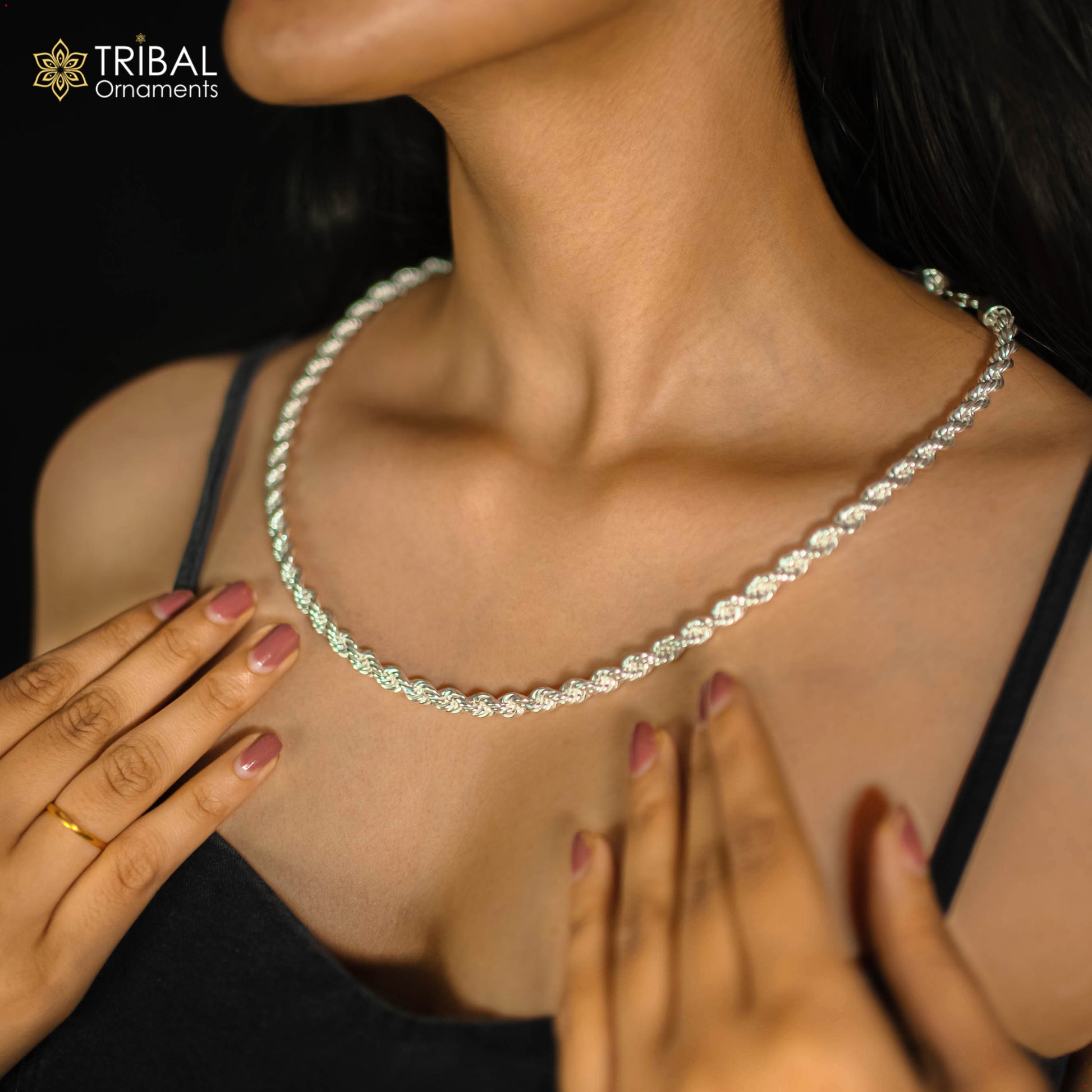 20"/24" Heavy Rope chain 925 sterling silver handmade single rope chain, necklace chain, plain bright silver trendy style men's chain ch569