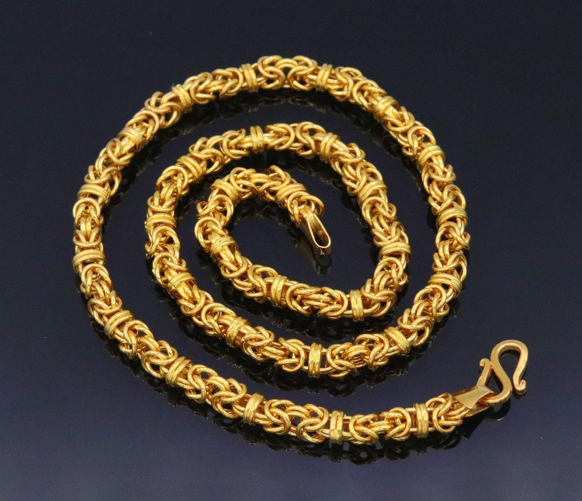 22K Yellow Gold Handmade Byzantine Chain Necklace — Unisex | Stylish Gifting Jewelry | Rajasthan Craftsmanship gch601