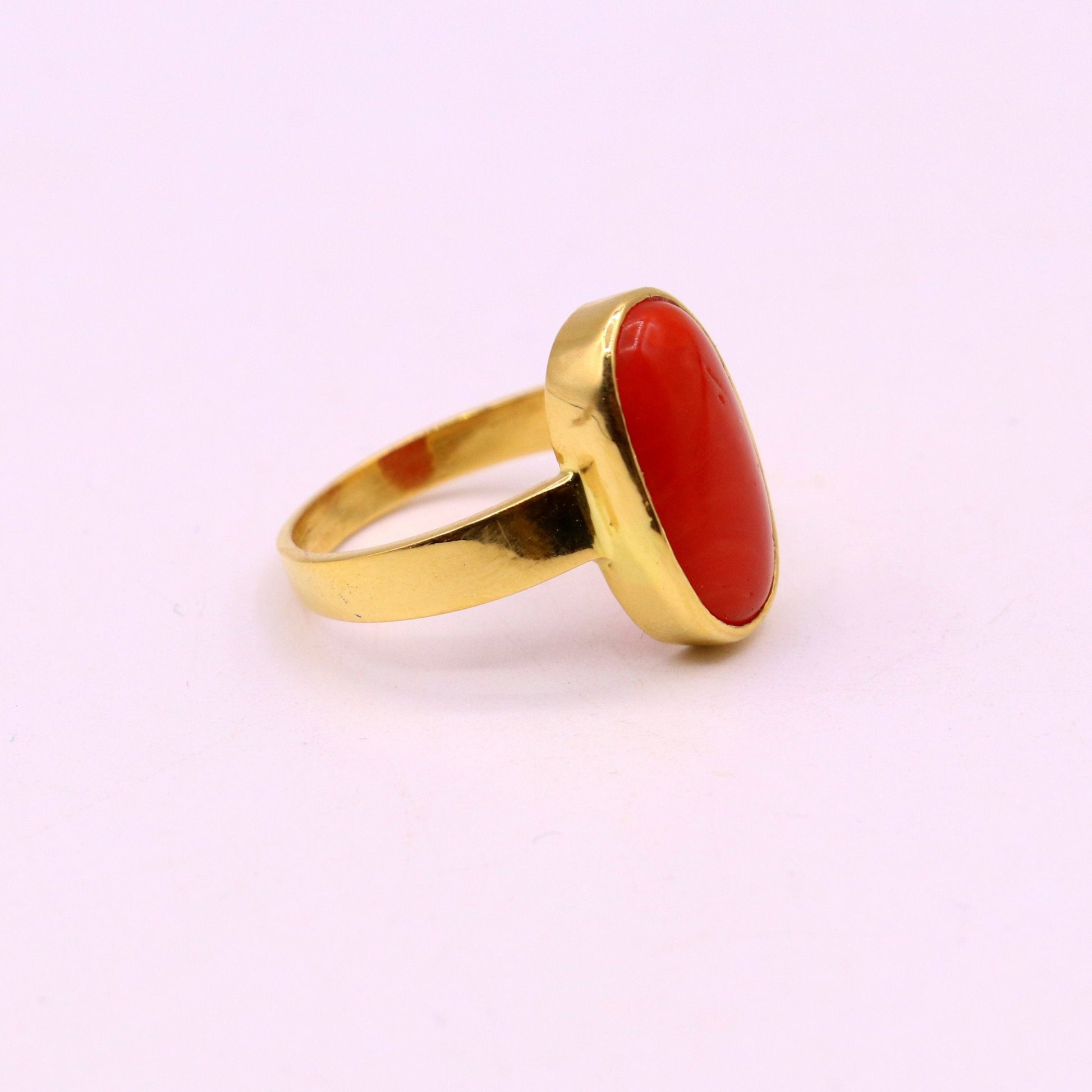 22karat yellow gold handmade real red coral stone unisex ring fabulous band from rajasthan india GR005
