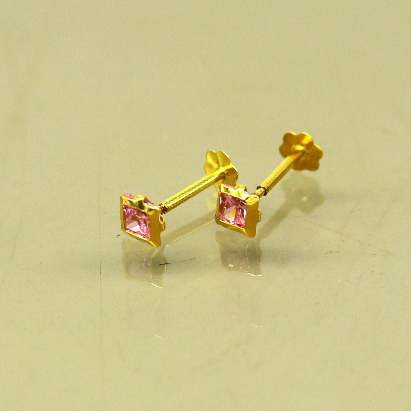 3mm tiny single pink stone handmade 18kt yellow gold combo jewelry we can use as stud or nose stud , baby stud cartilage jewelry er111