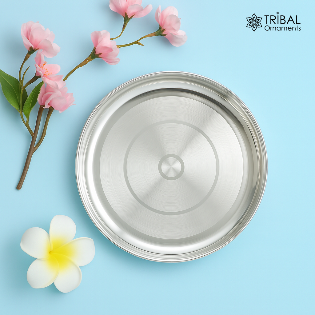 4" 999 fine silver handmade solid plate/ tray, best gifting baby set for baby food, silver utensils, silver articles, puja utensils sv275