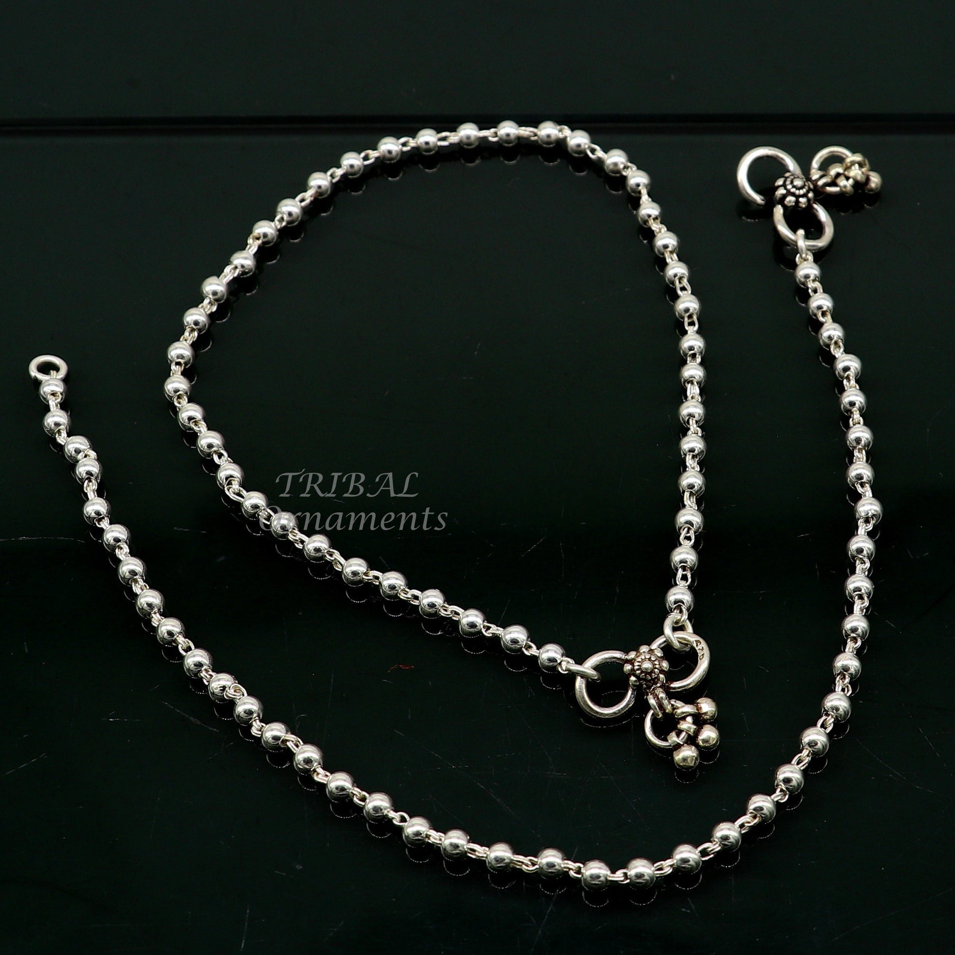 4mm 9"to 12" 925 sterling silver beaded/ball chain anklet bracelet amazing light weight delicate anklets belly dance silver jewelry ank538