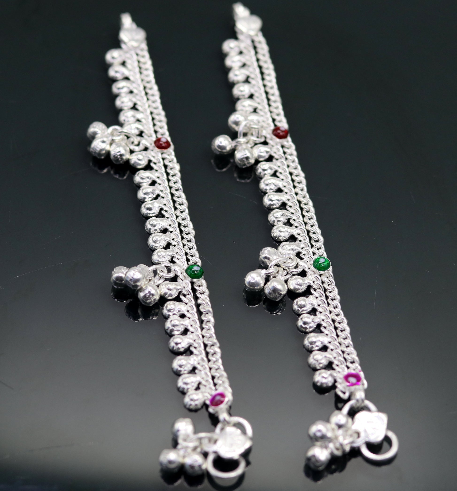 5.2" Sterling silver handmade gorgeous baby ankle bracelet, excellent kids anklets charm foot bracelet customized jewelry india ank206
