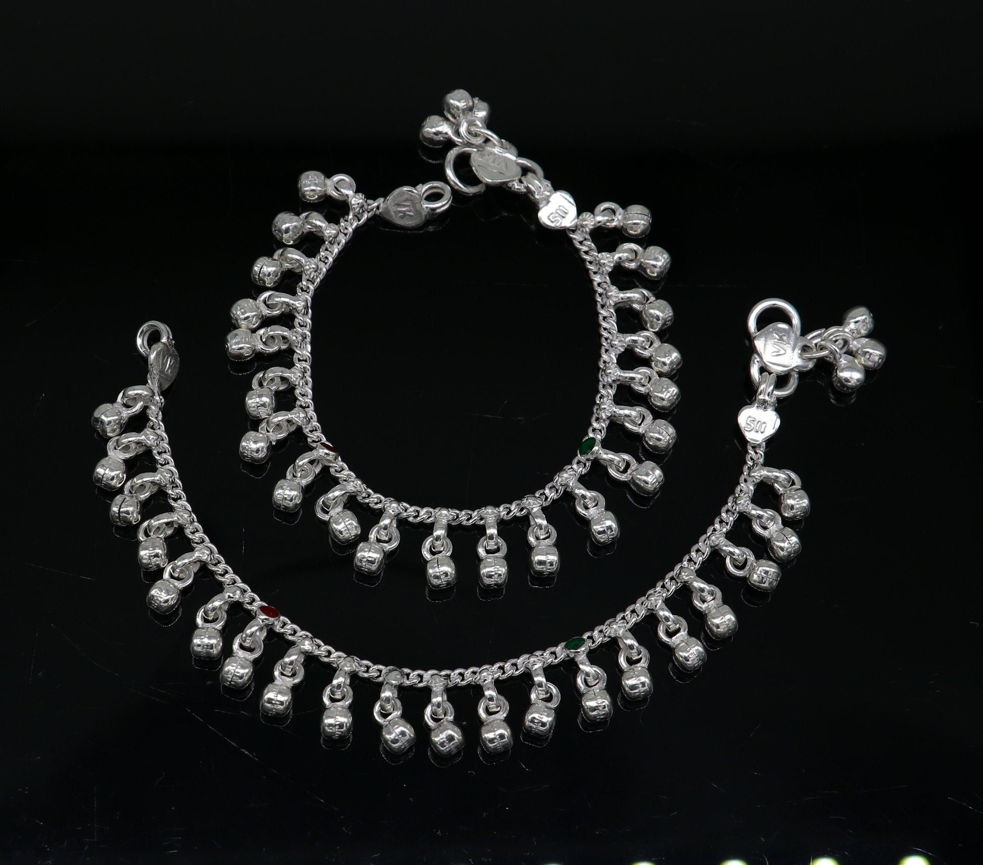 5.5" Handmade sterling silver new born baby anklets, excellent waved charming noisy bells baby anklet bracelet, payal kids jewelry ank280