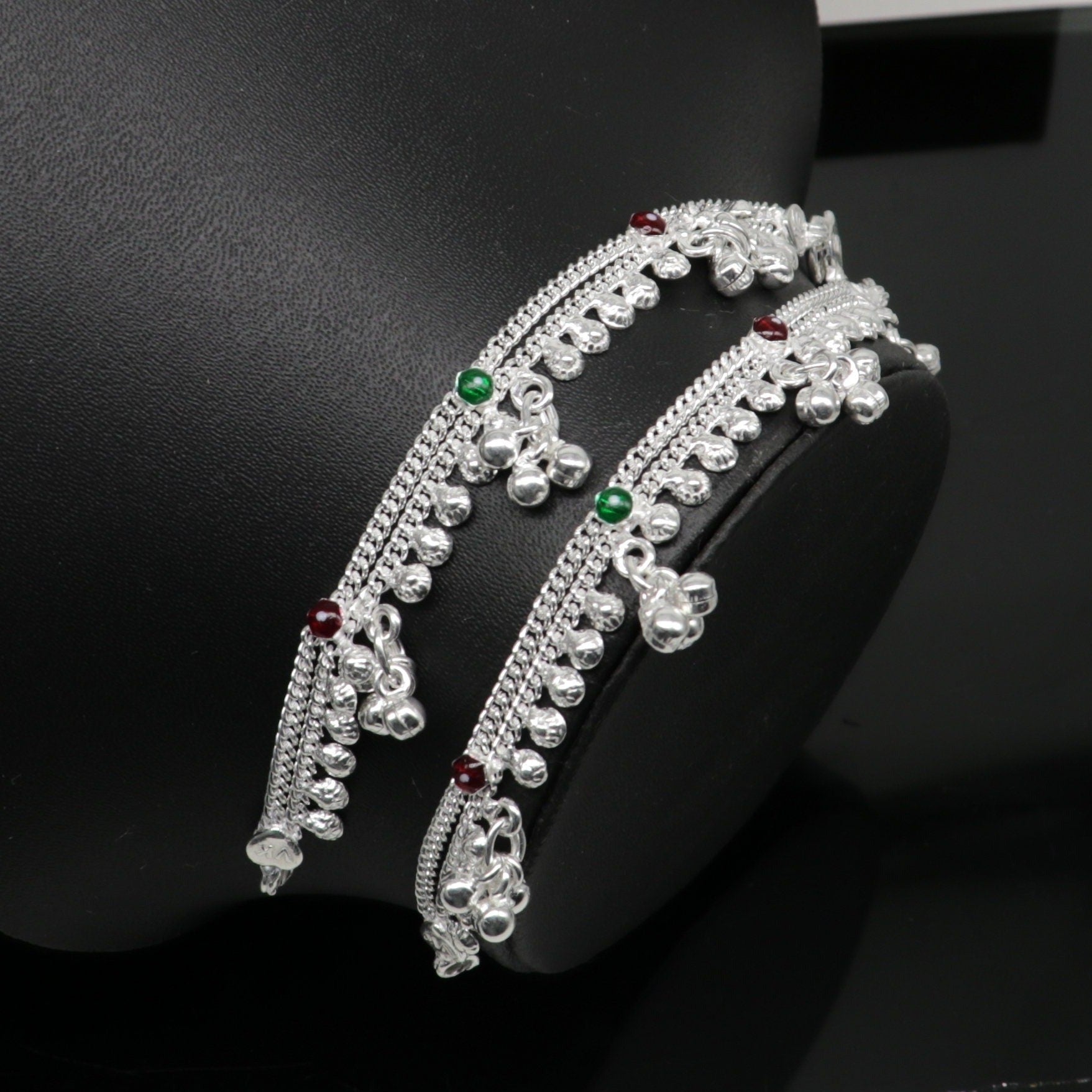 5.5" inches baby anklets Sterling silver handmade amazing ankle bracelet kids anklet noisy sound bells charm anklets jewelry india ank413