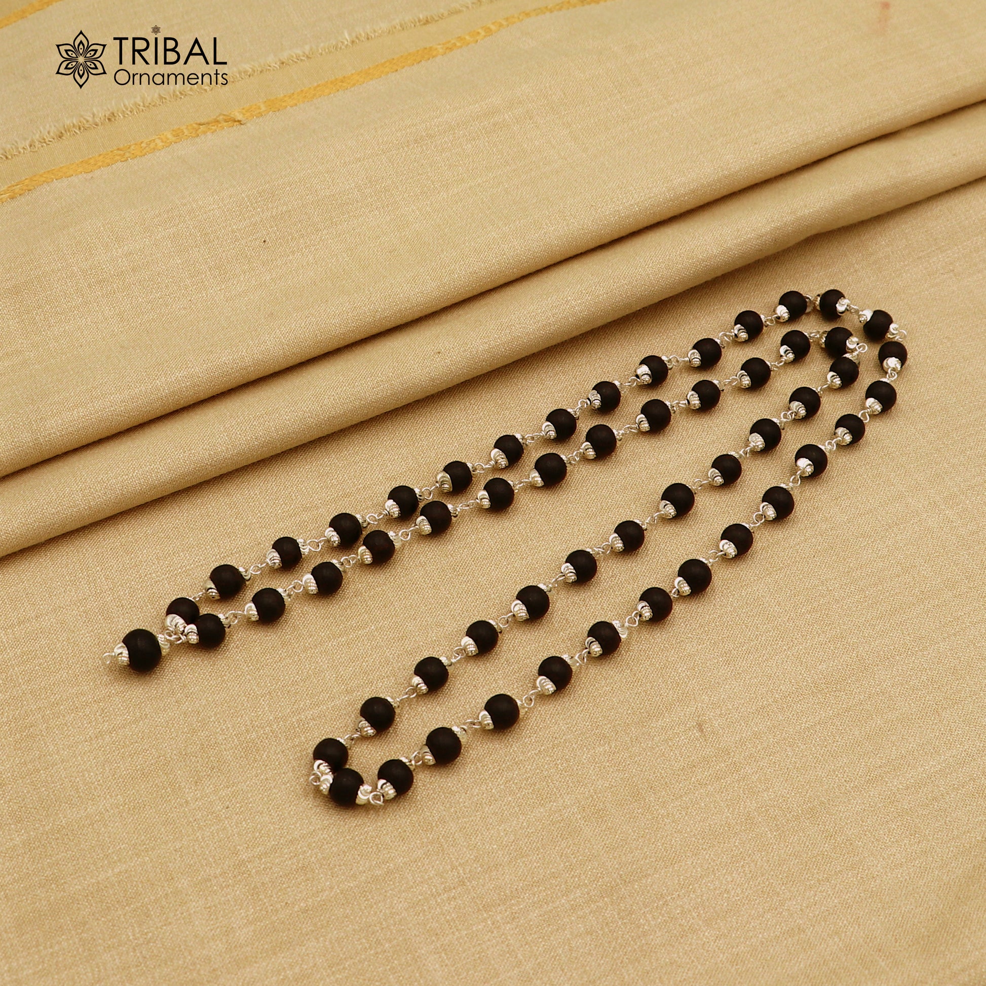 54/108 beads handmade karungali round beads mala 925 solid silver chain necklace ch608