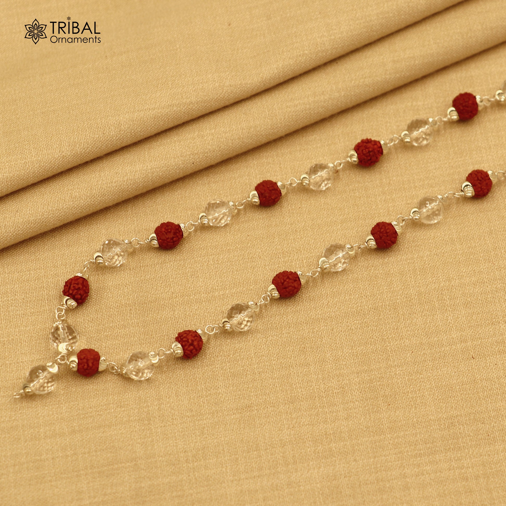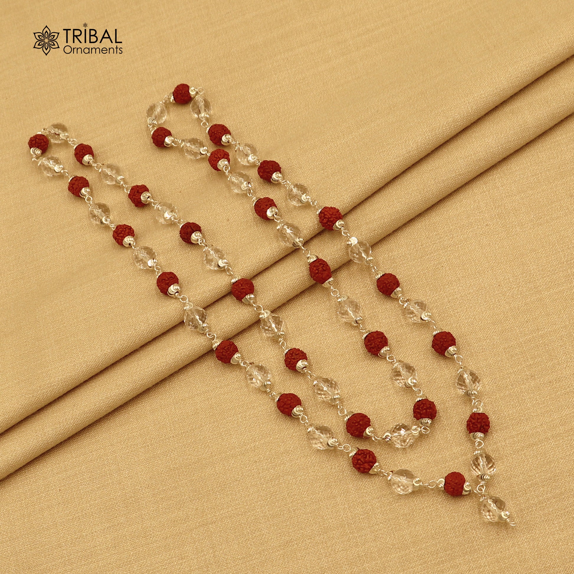 54 / 108 beads Rudraksha and Sphatik beads navkar jaap mala 925 solid silver chanting necklace ch614
