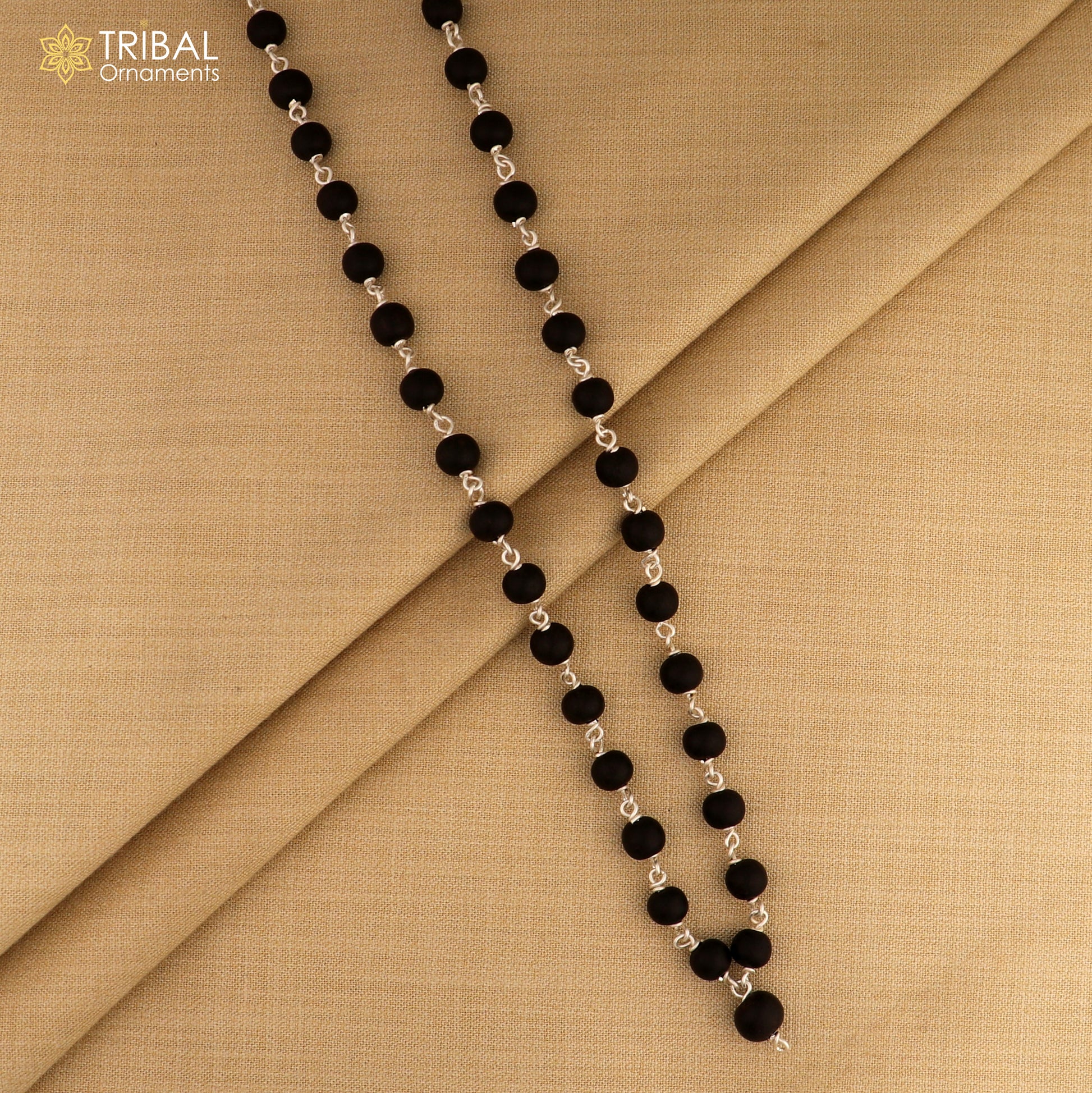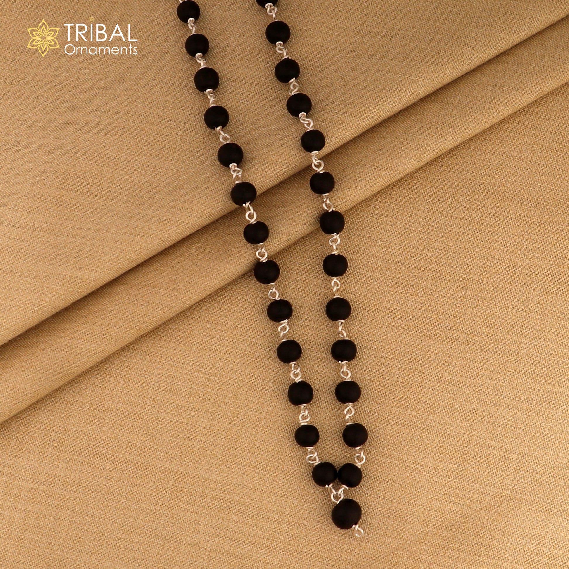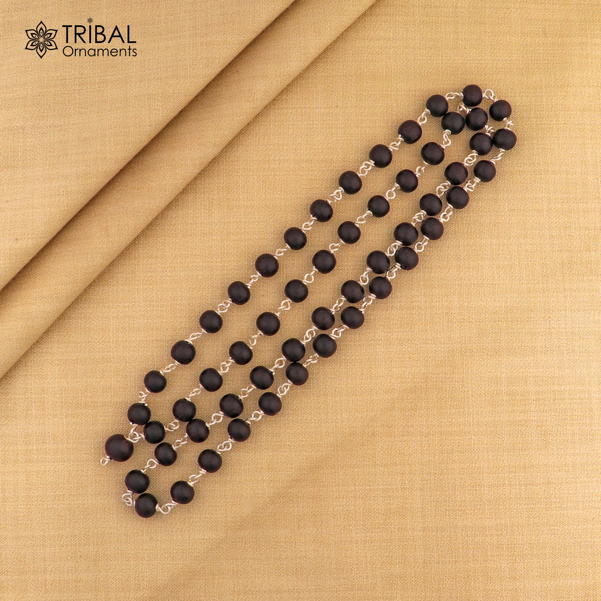 54/108 beads handmade karungali round beads mala 925 solid silver chain necklace ch606