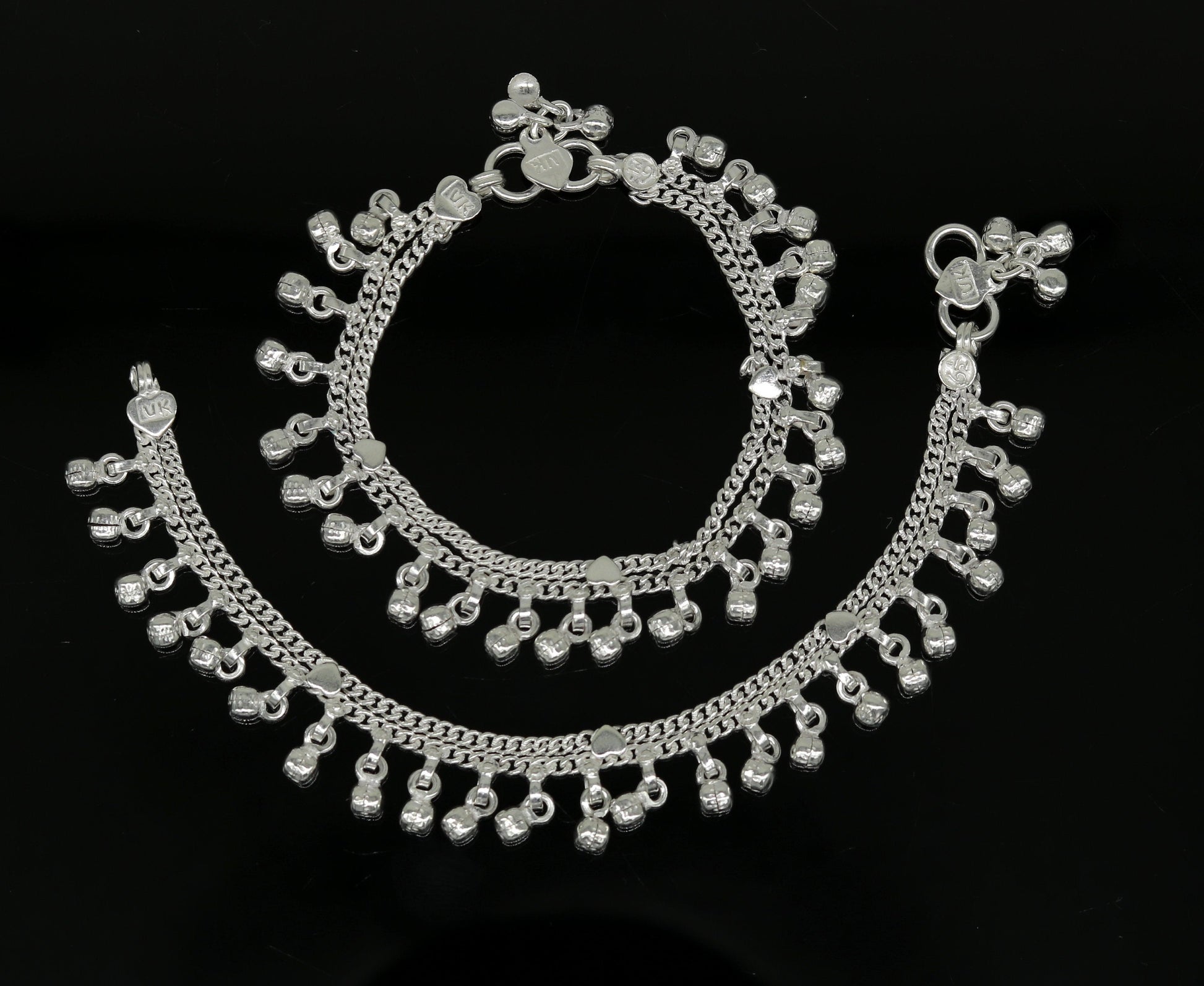 6.2" Sterling silver handmade baby anklet charm ankle bracelet, fabulous hanging noisy bells, excellent unisex baby foot bracelet ank238