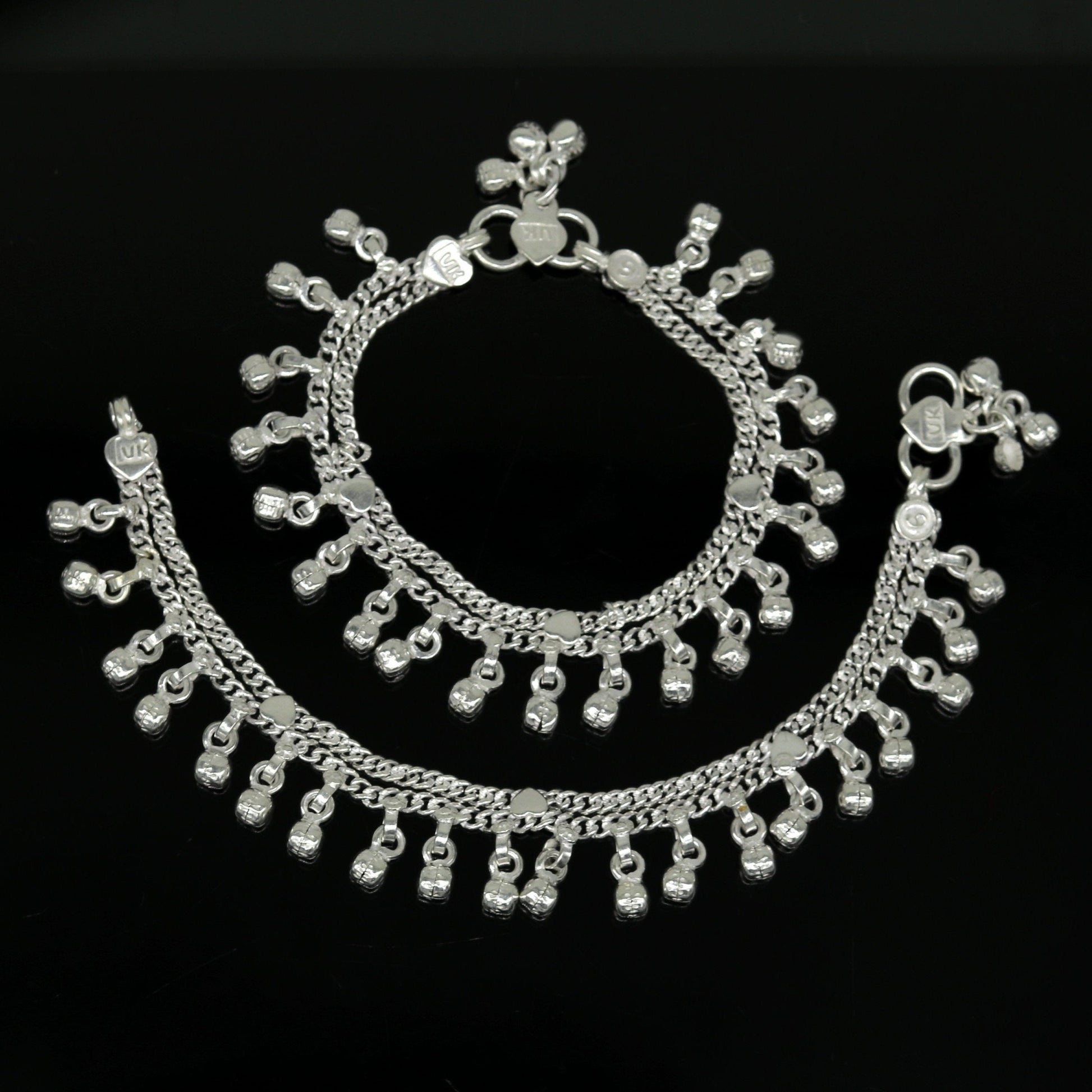 6.5" Inches long sterling silver handmade gorgeous charm baby kids anklets, excellent hanging noisy bells customized kids jewelry ank242