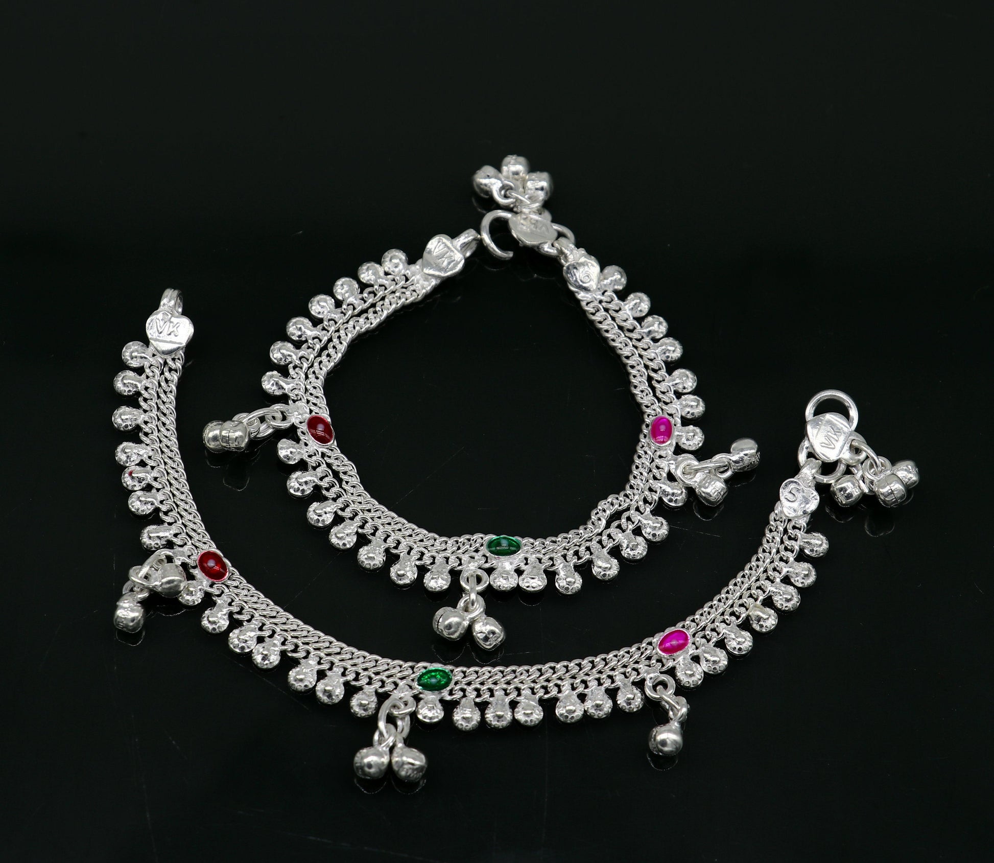 6" handmade solid sterling silver jingling bells noisy anklets, excellent gifting baby foot bracelet charm kids jewelry from india ank363