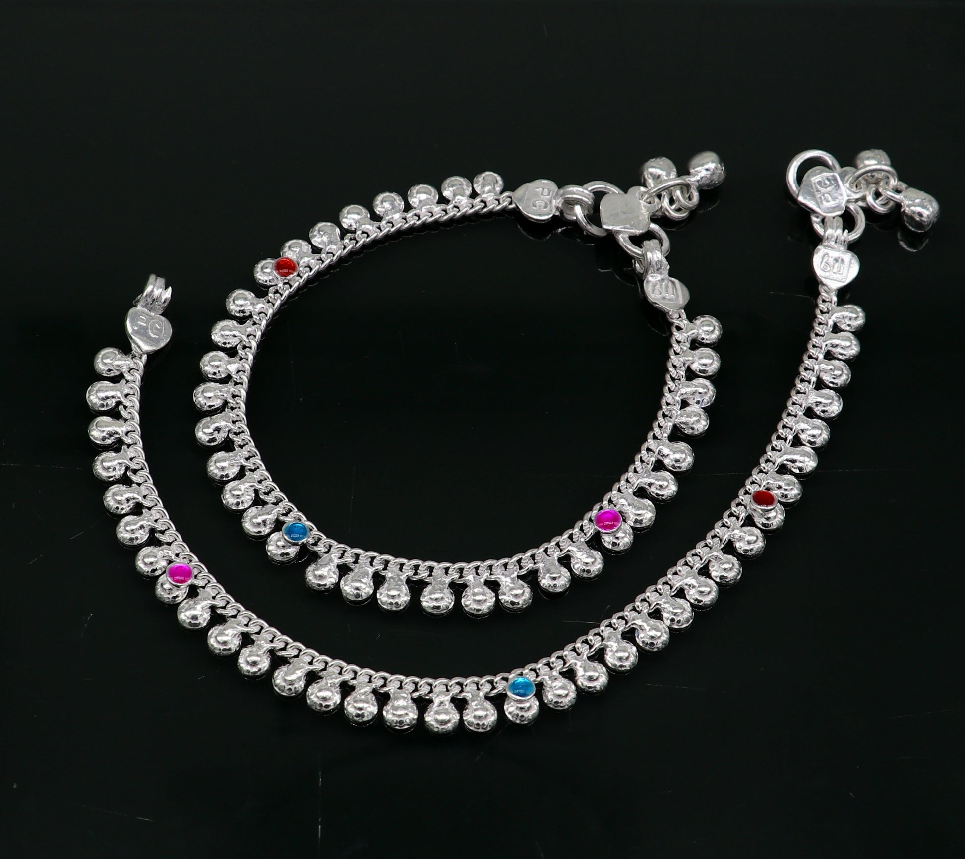 6" long handmade single curb Cuban smooth chain new born baby anklets, fabulous charm ankle bracelet unisex kids jewelry from India ank299