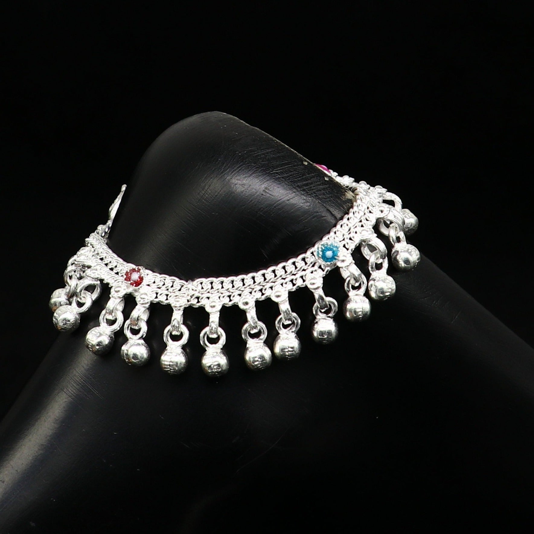 6" long Sterling silver customized baby anklets, stunning hanging waved jingling bells, charming noisy ankle bracelet kids jewelry ank408