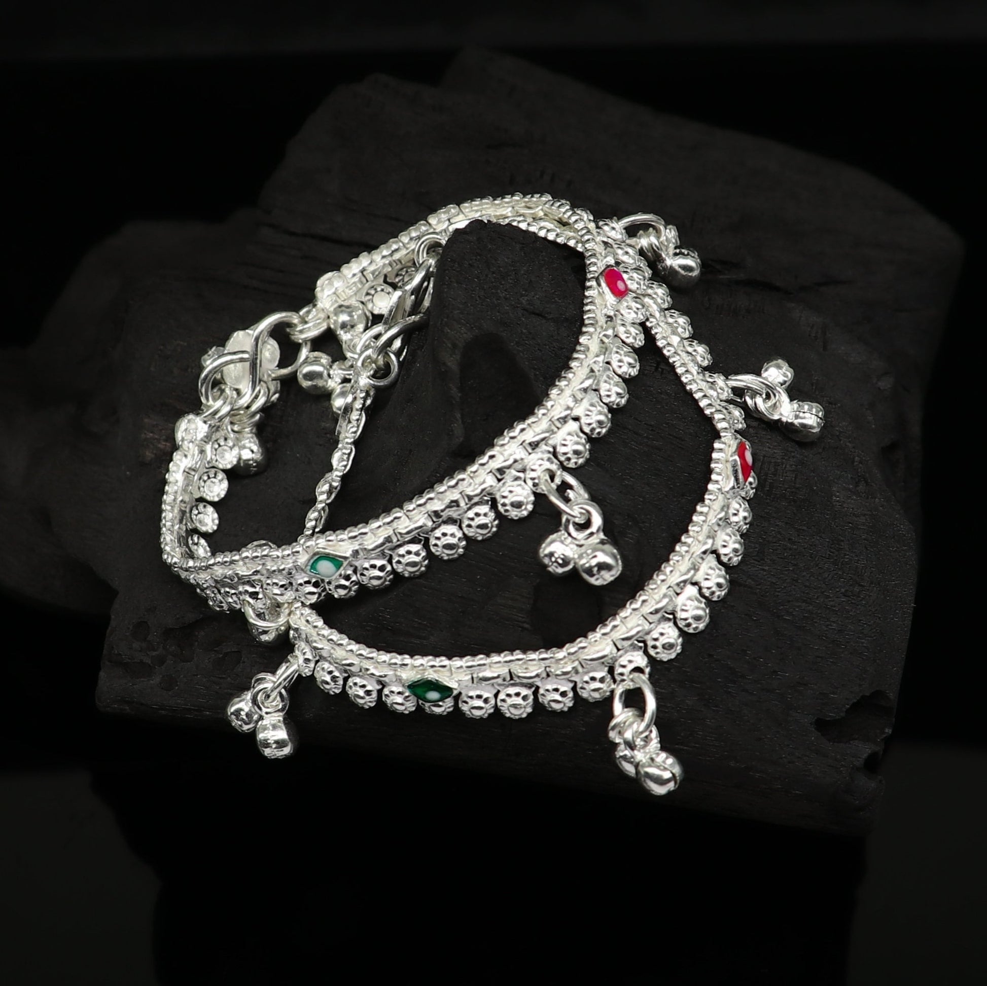 6" long Sterling silver handmade customized baby anklets, Best gifting baby anklets kids jewelry, new fancy jingling ankle bracelet ank265