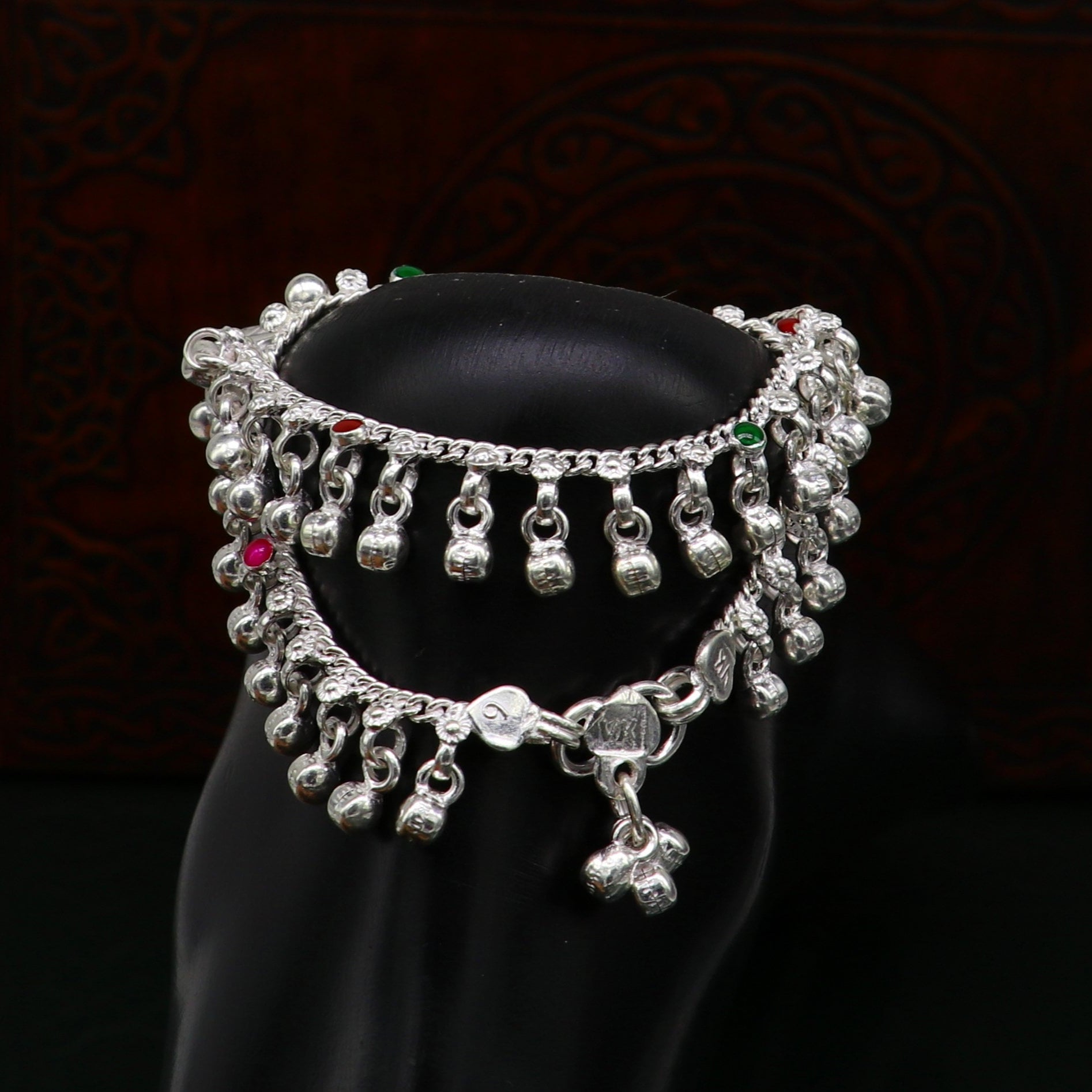 6" Pure sterling silver handmade waved hanging noisy bells anklets baby ankle bracelet, gifting noisy anklets kids jewelry from India ank317
