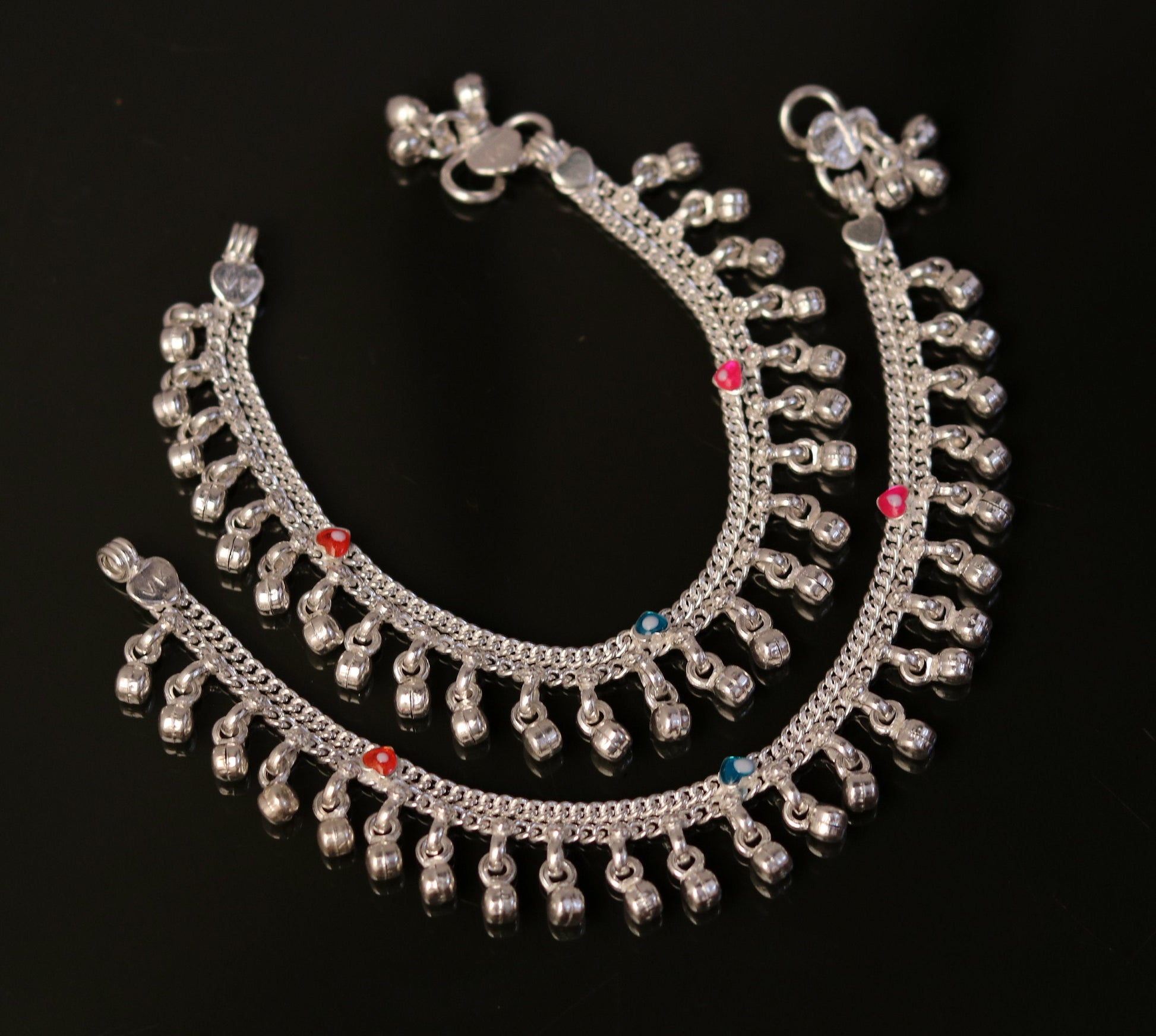 6" Sterling silver handmade fabulous charm baby kids anklets pair with fabulous noisy jingle bells, excellent baby foot bracelet ank165