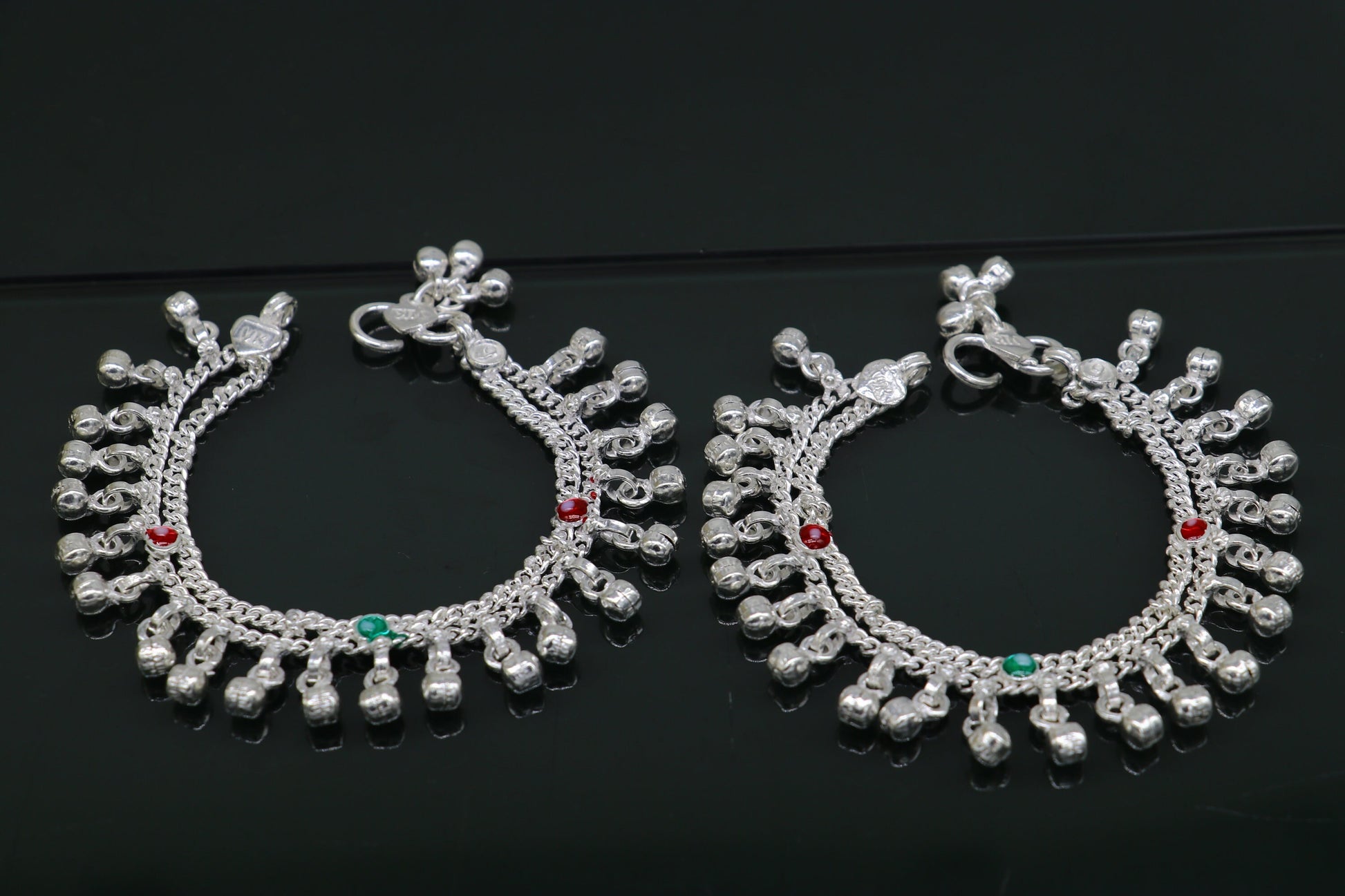 6" sterling silver handmade hanging drops anklets baby kids anklet bracelet, gifting noisy anklets kids jewelry from India ank316