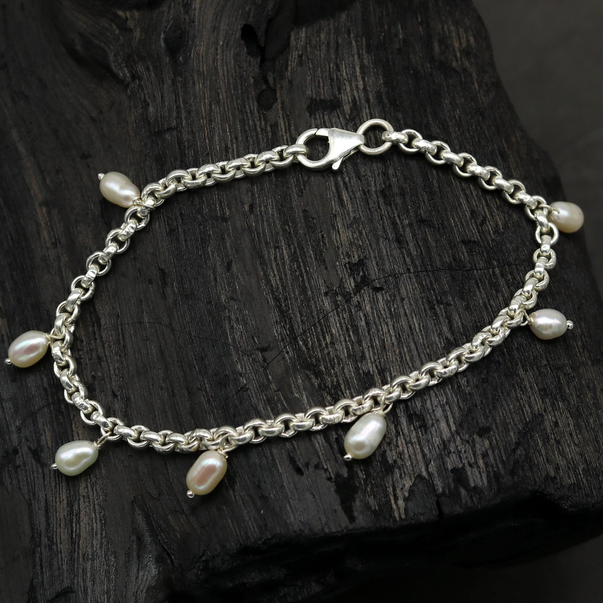 7.5" 925 sterling silver handmade customized charm bracelet, stylish pearl bracelet unisex gifting jewelry belly dance jewelry nsbr191