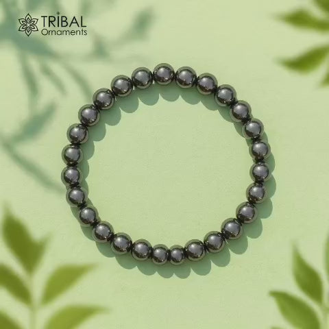 8 MM grey hematite natural stone beaded handmade bracelet, customized unisex Jewelry, stnbr127