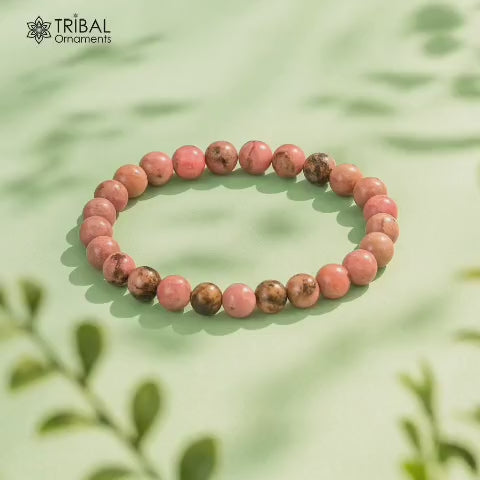 8 MM rhodonite natural stone beaded handmade bracelet, customized unisex Jewelry, stnbr132
