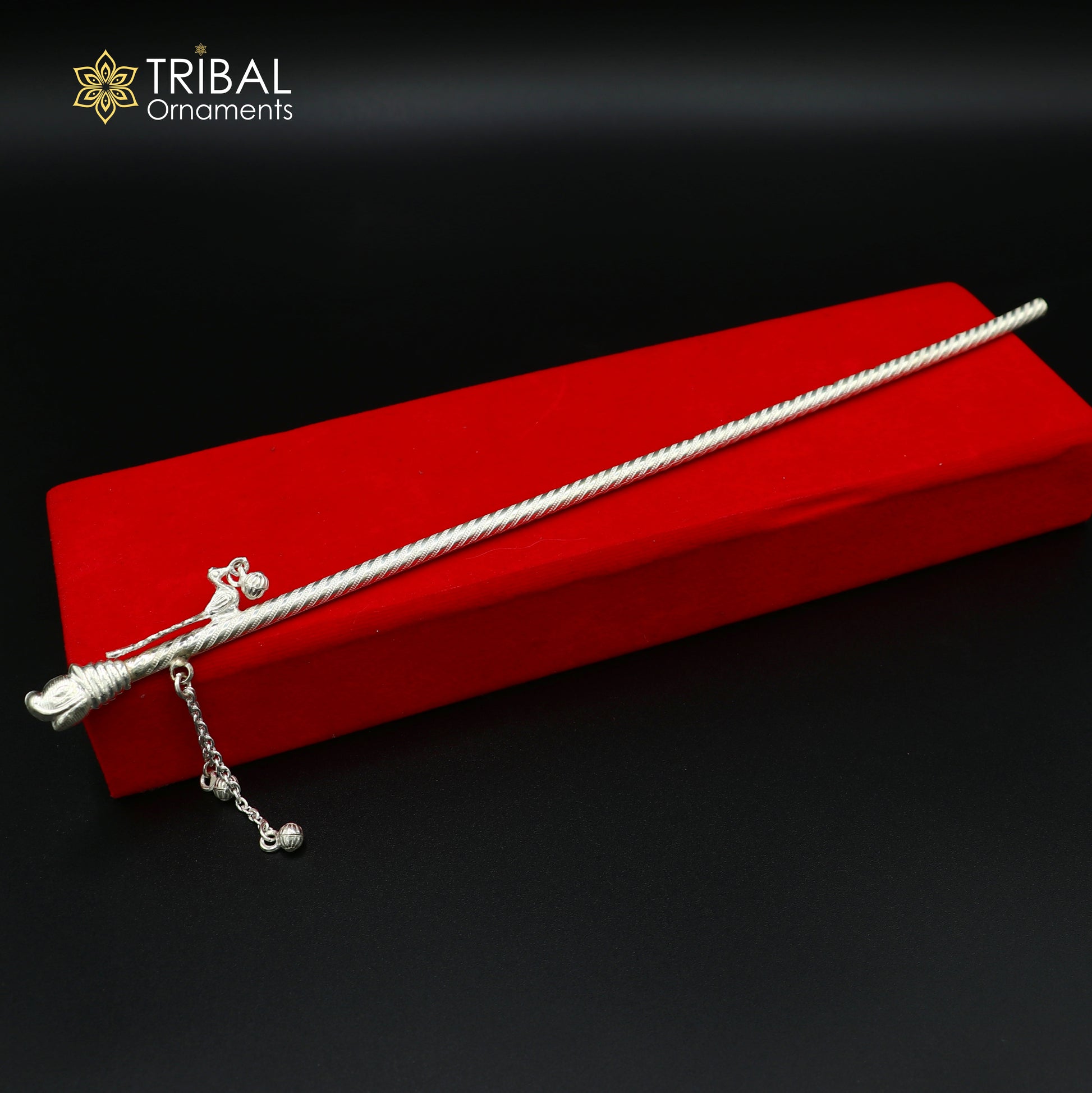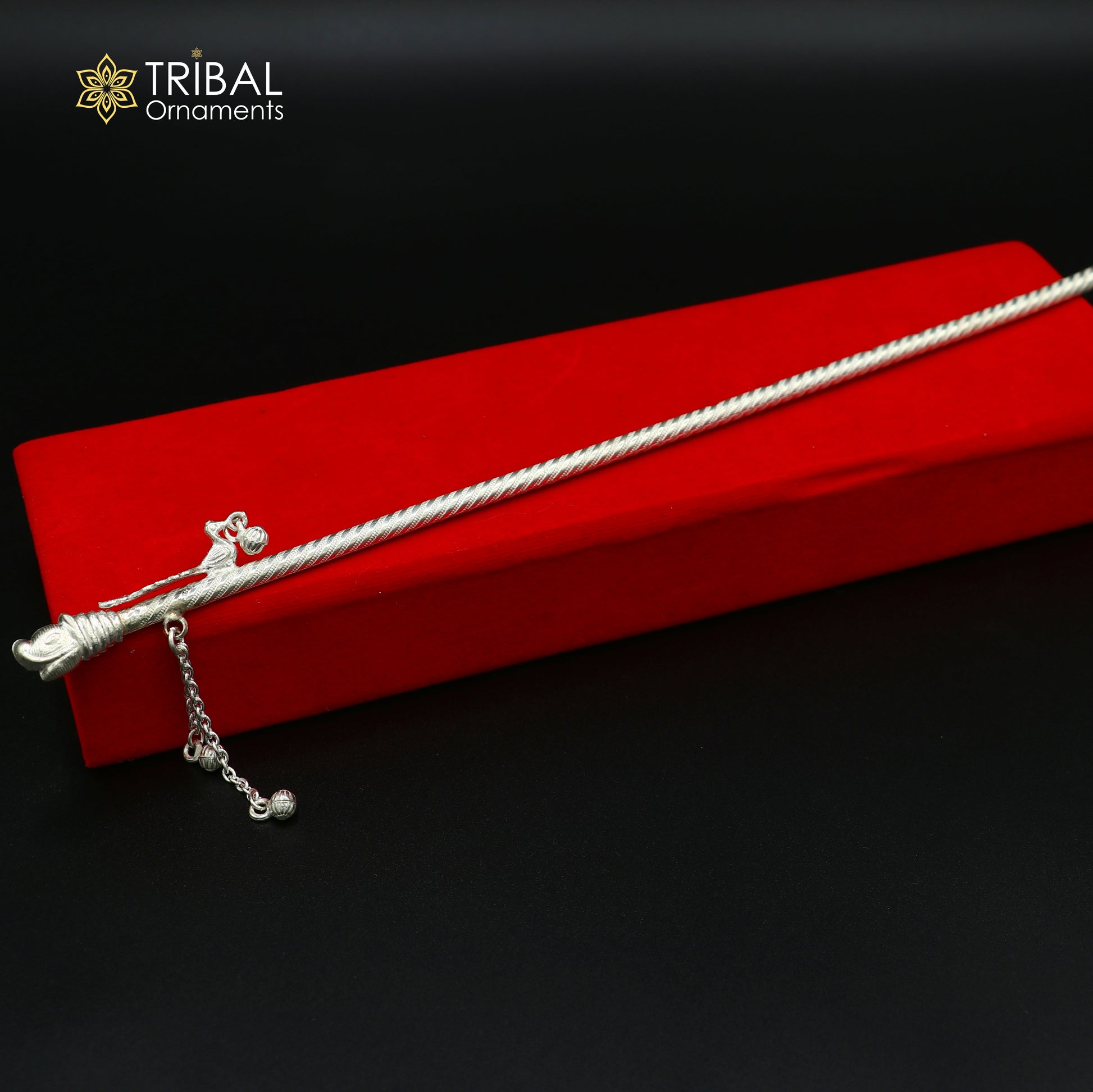 11" 925 sterling silver elephant design bansuri laddu Gopala flute, Krishna flute su1374