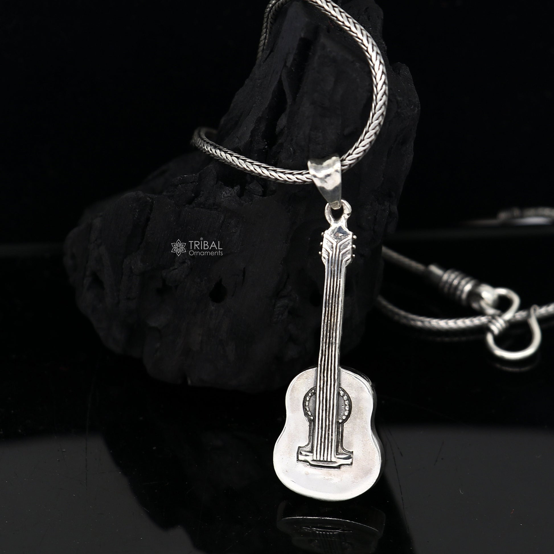 925 pure silver GUITAR pendant with wheat chain delicate unisex jewelry NSP728
