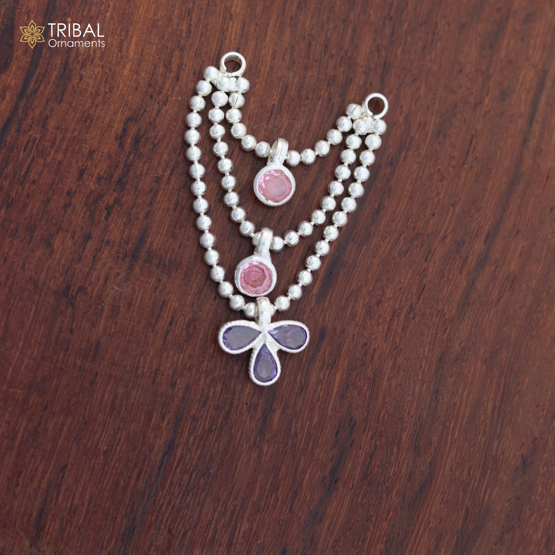 925 sterling silver 3 line beaded chain necklace for Lord Krishna Laddu Gopala jewelry set816