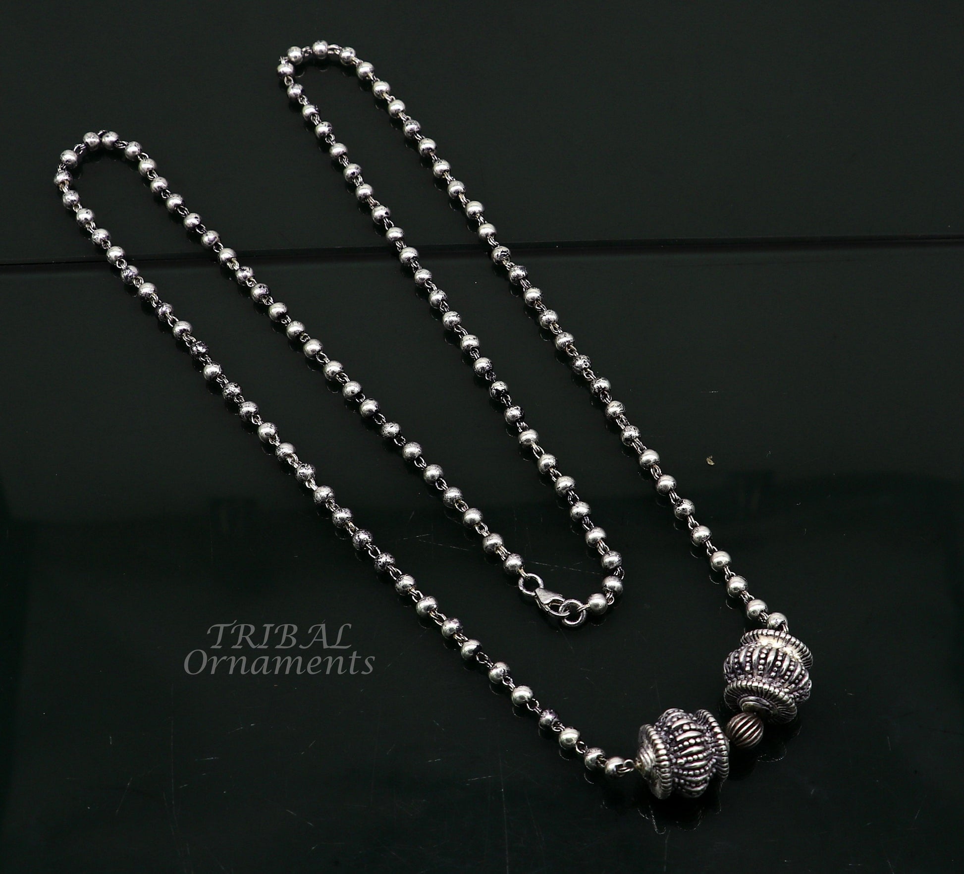925 sterling silver 4mm beads ball chain necklace with gorgeous antique design ball pendant customized tribal classical jewelry set531