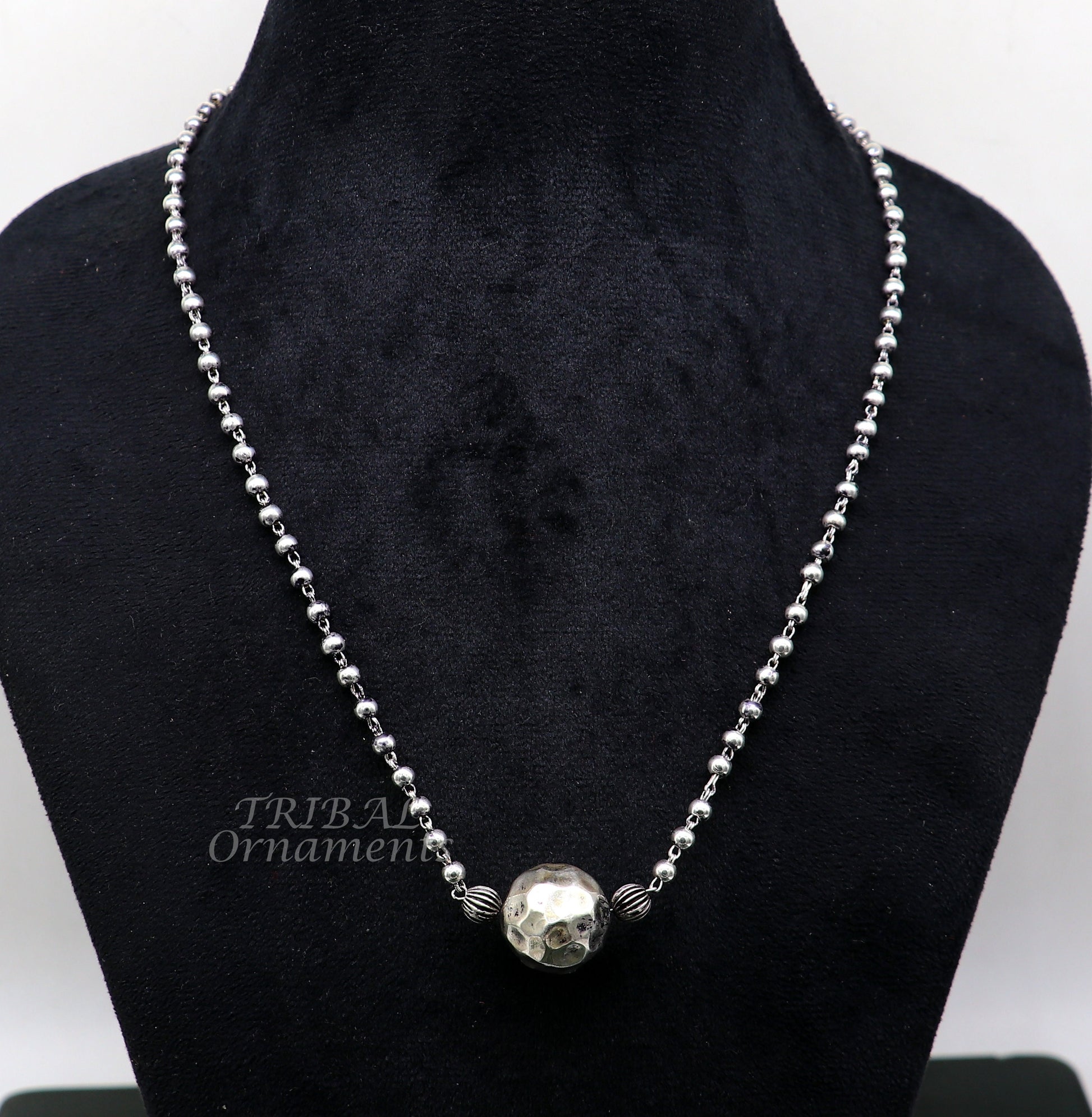 925 sterling silver 4mm beads ball chain necklace with gorgeous antique design ball pendant customized tribal classical jewelry set532