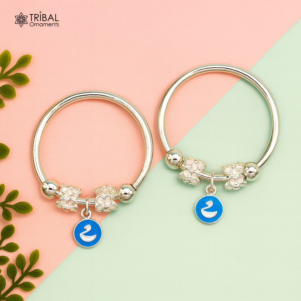Item type-Baby/ Kids bangle bracelet . Size-Free size(Adjustable min size 4.0 cm max size- 5.4 cm(2.1") ). Weight-17.870 grams. width- 2.0 mm approx. hanging length-1.5 cm Quantity-Pair. Silver beads size-small-5mm large-7 mm approx. use for - children girl's also Finish-high polished 925 silver |