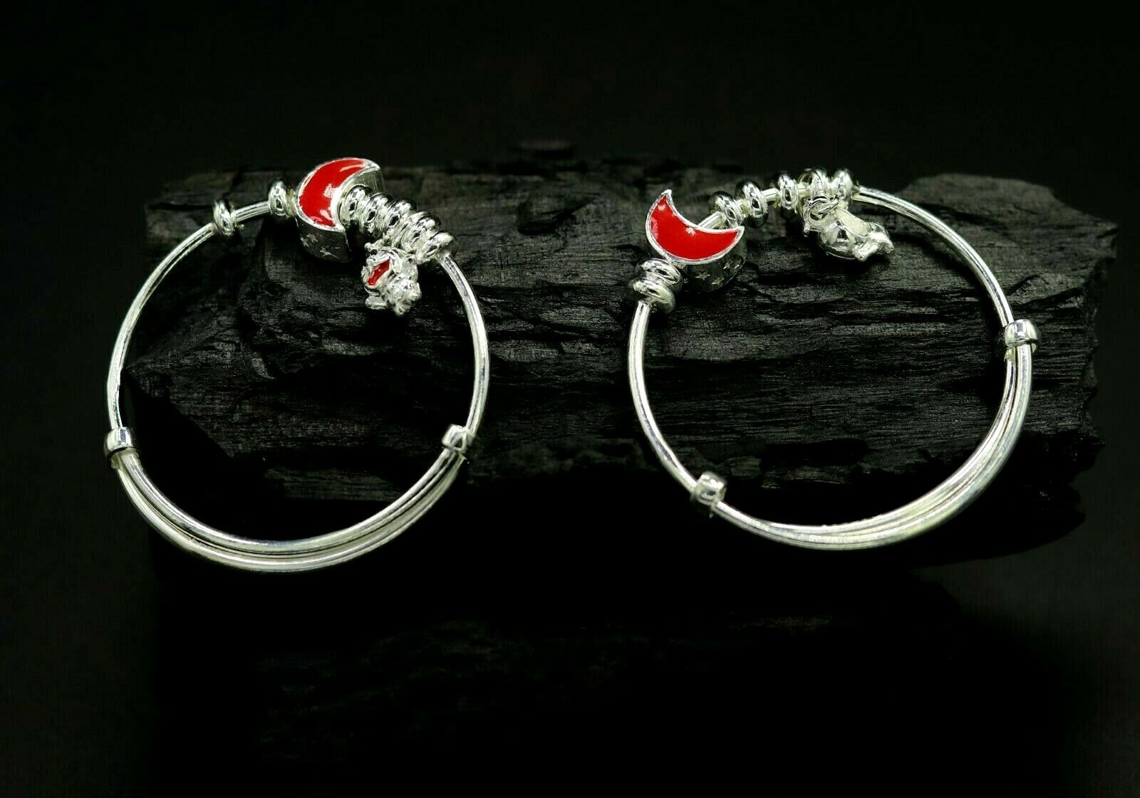 925 sterling silver adjustable charm bangle bracelet kada unisex kids baby bbk38