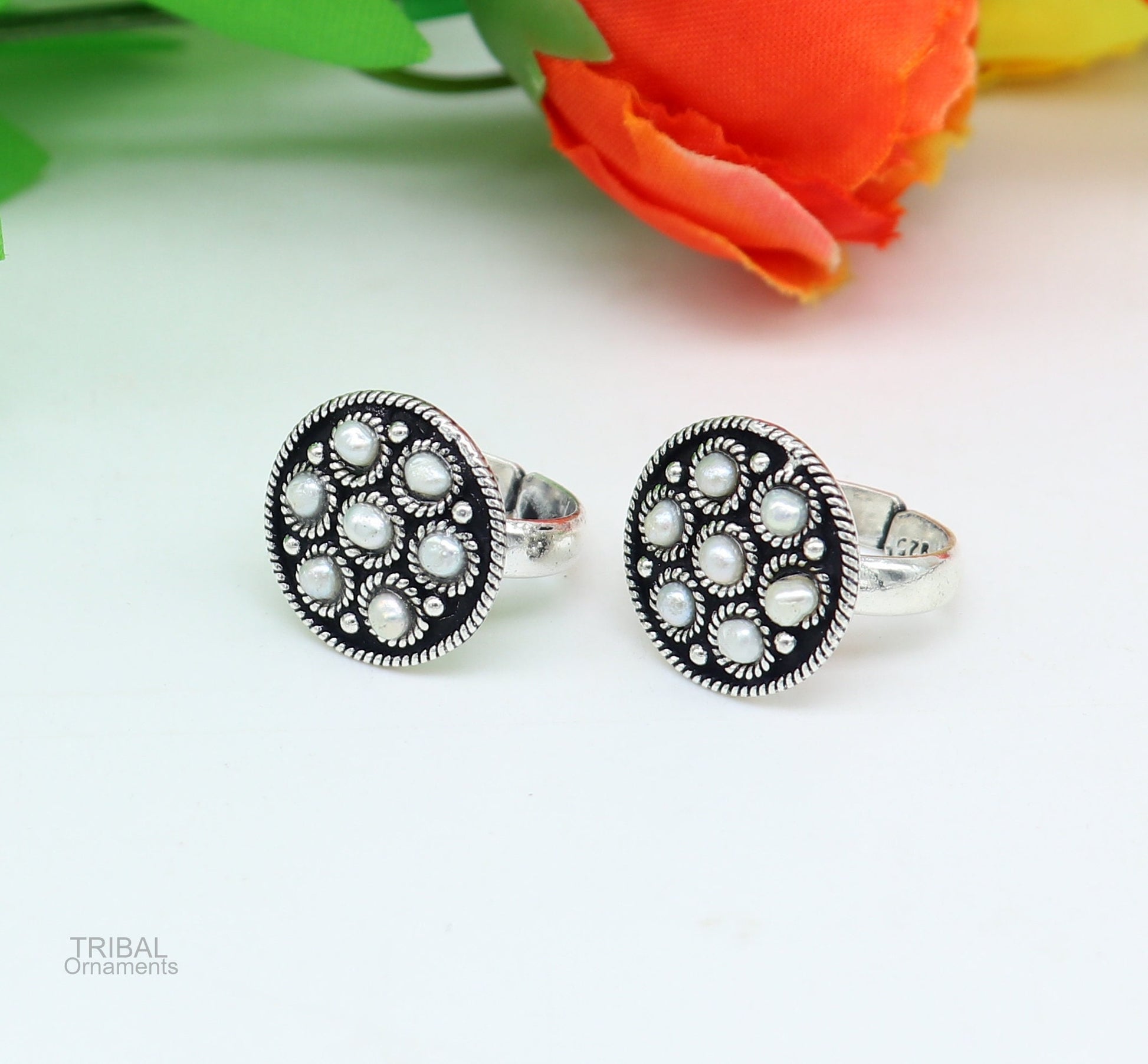925 sterling silver adjustable tiny toe ring band fabulous blue turquoise stone tribal belly dance brides jewelry from india ntr57