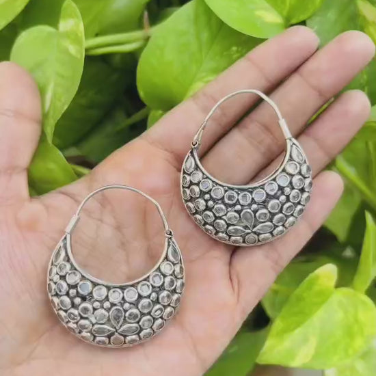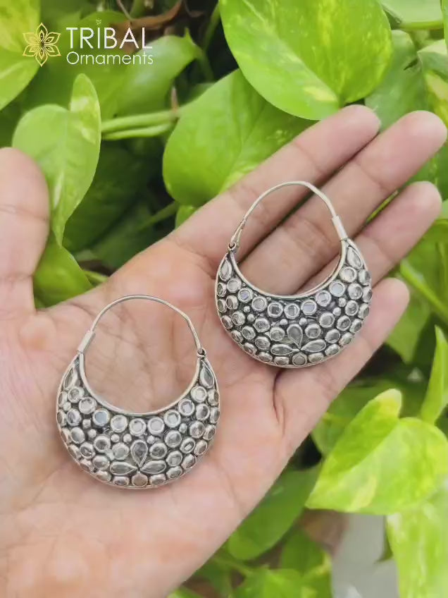 925 sterling silver vintage stylish crystal polki stone hoops earring brides belly dance jewelry s1096