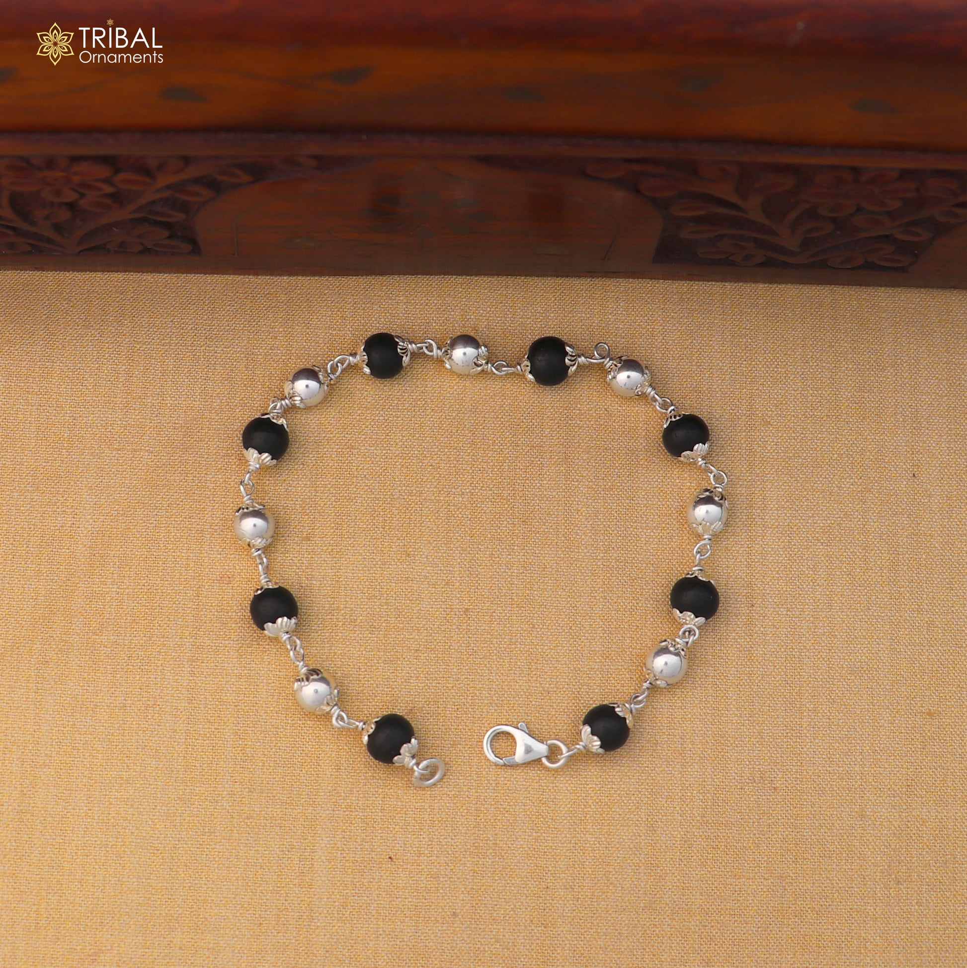 925 Sterling silver and karungali black beads bracelet for unisex jewelry sbr797
