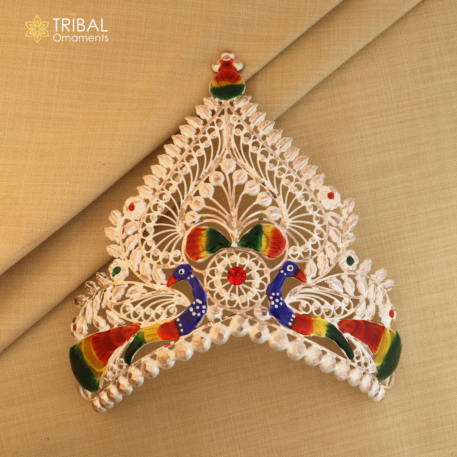 925 sterling silver antique peacock design silver mukut (crown), amazing god crown temple god art sm45