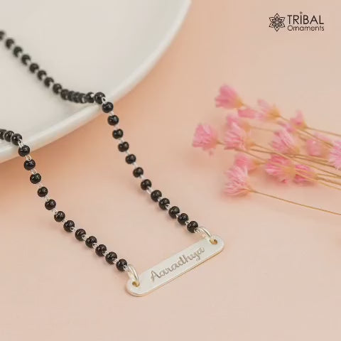 925 sterling silver black beads and aradhaya name design mangal sutra necklace brides Mangalsutra and personalized jewelry ms97