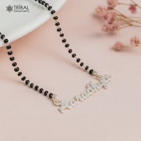 925 sterling silver black beads and aradhaya name design mangal sutra necklace brides Mangalsutra and personalized jewelry ms96