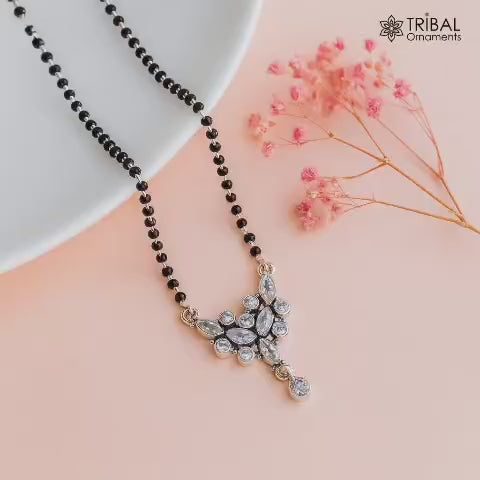 925 sterling silver black beads and white cut stone mangal sutra necklace brides Mangalsutra chunky necklace ms83