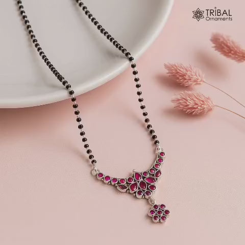 925 sterling silver black beads and red cut stone mangal sutra necklace brides Mangalsutra chunky necklace ms89