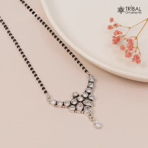 925 sterling silver black beads and white cut stone mangal sutra necklace brides Mangalsutra chunky necklace ms93