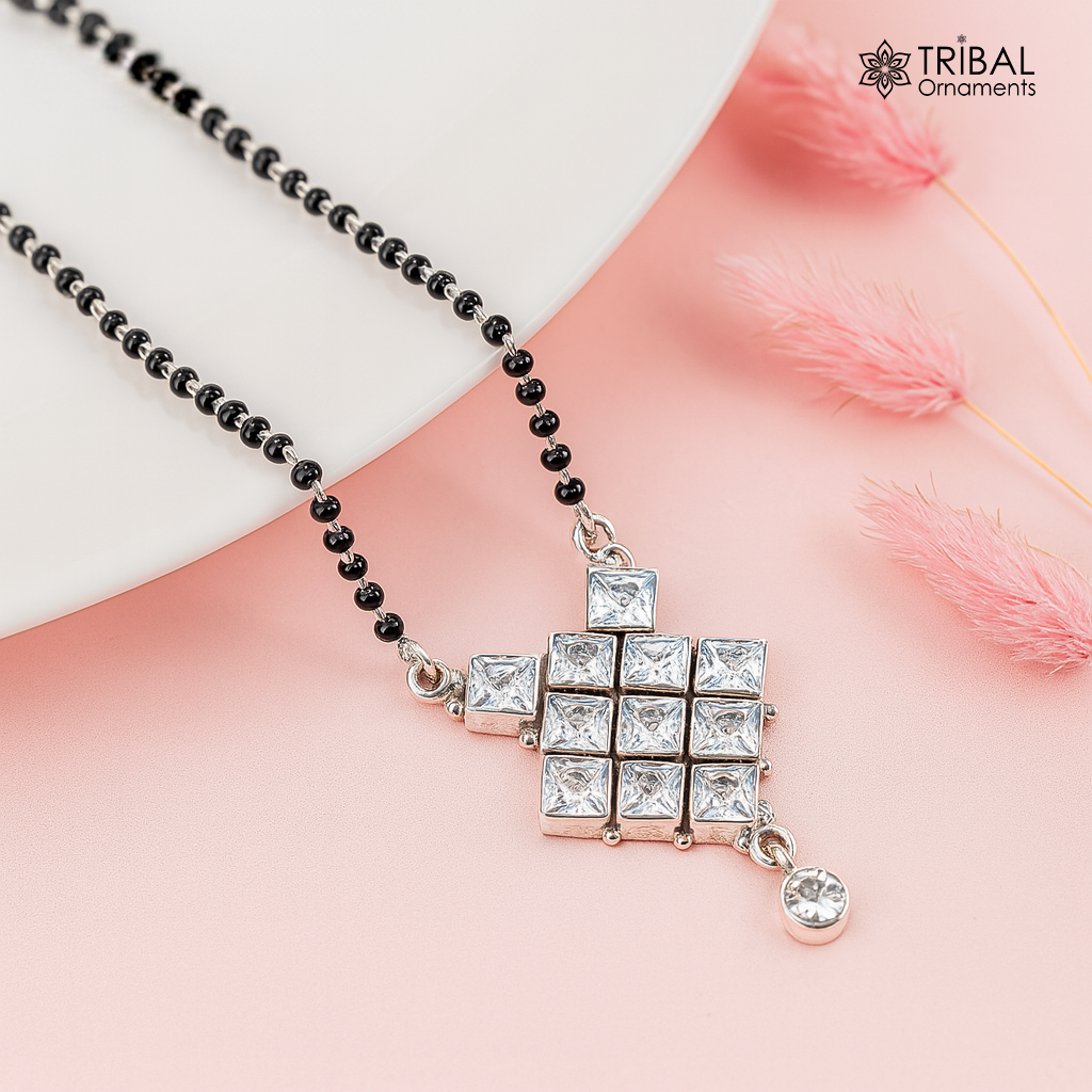 925 sterling silver black beads and white cut stone mangal sutra necklace brides Mangalsutra chunky necklace ms90