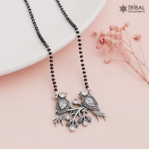 925 sterling silver black beads chain mangal sutra necklace for daily use brides Mangalsutra chunky necklace love bird pendant ms61